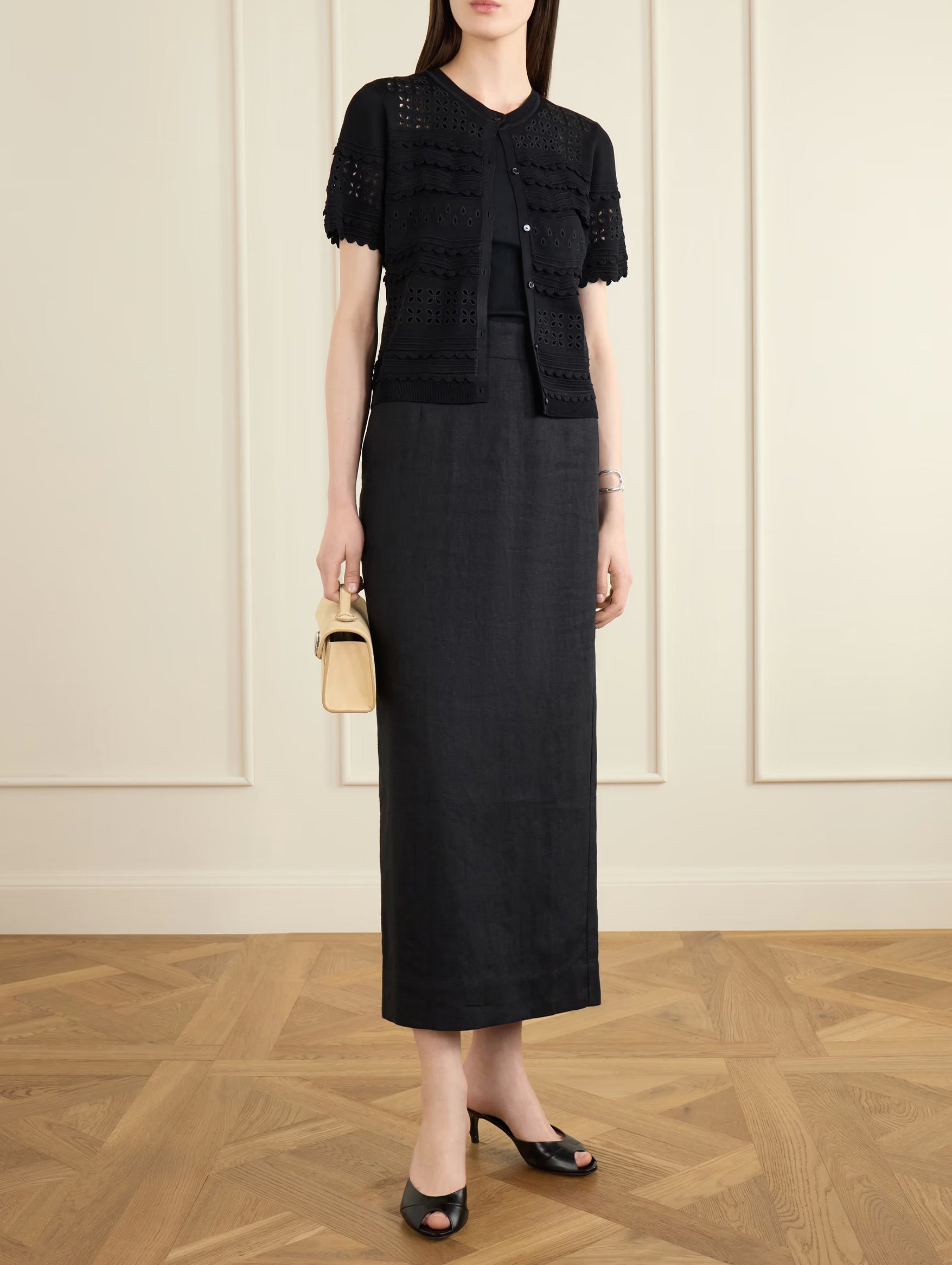 Get notified when Abriana Eyelet Knit Cardigan in Noir - M / Black comes back in stock.