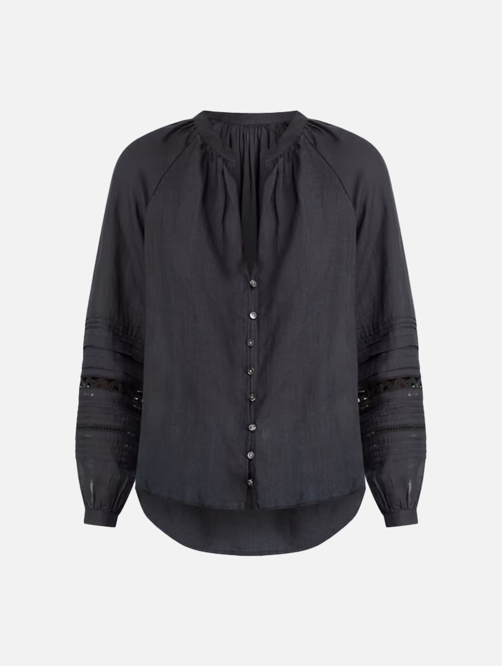 An effortless classic, the Alani Ramie Top in Black from Veronica Bear works for a multifaceted, layered life. Cut from airy ramie-voile, this relaxed silhouette has blouson sleeves detailed with pintucks and crochet trims. An easy upper for everyday ease.