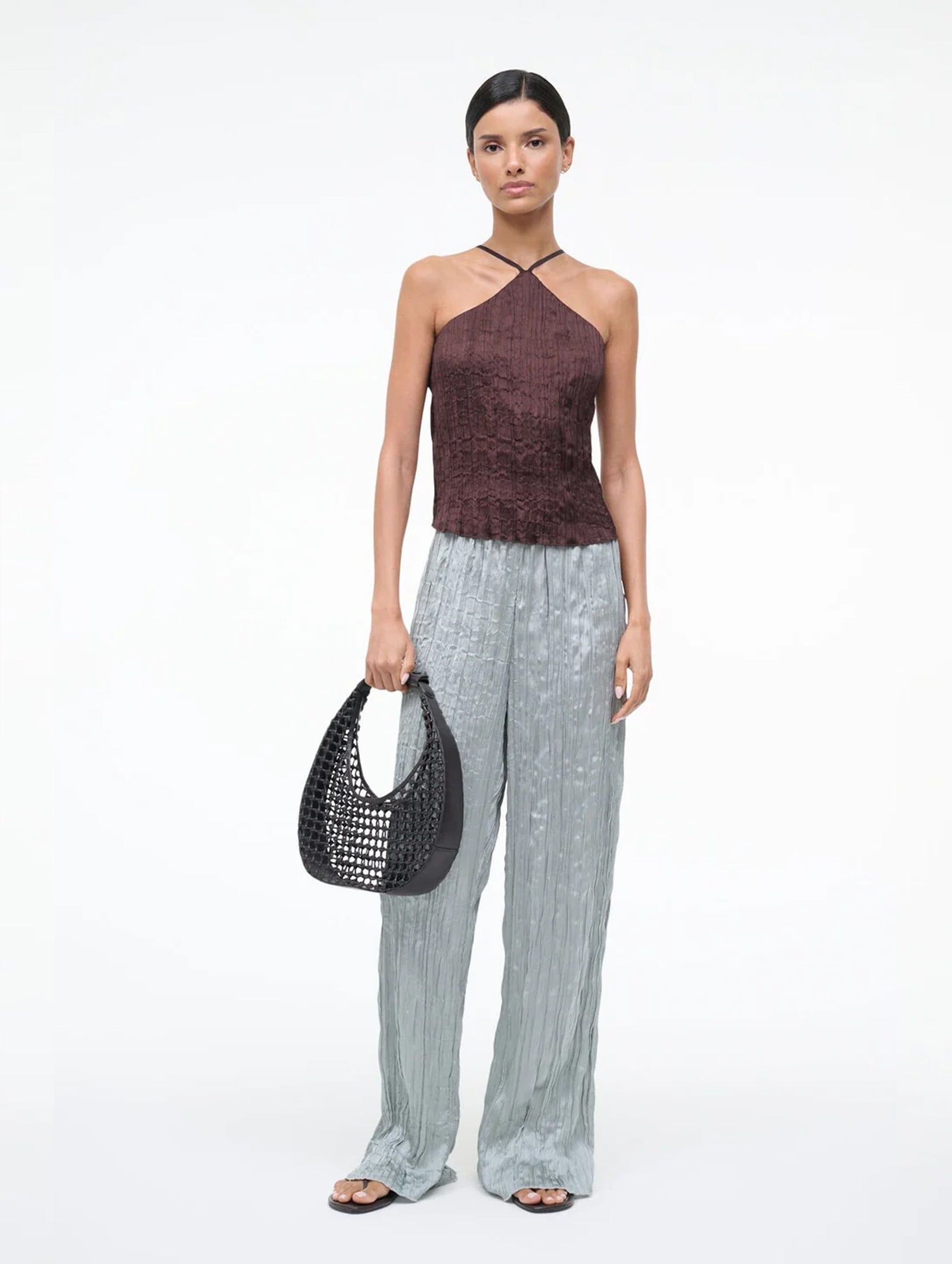 Effortlessly chic with quiet character, the Akari Top in earthy tones is an understated essential redefined. Its clean lines and pared‑back silhouette offer a modern minimalism that drapes softly and flatters naturally, perfect for layering or wearing alone. Pair with the coordinating Nami Pants for evening, this top embodies subtle sophistication and timeless versatility.