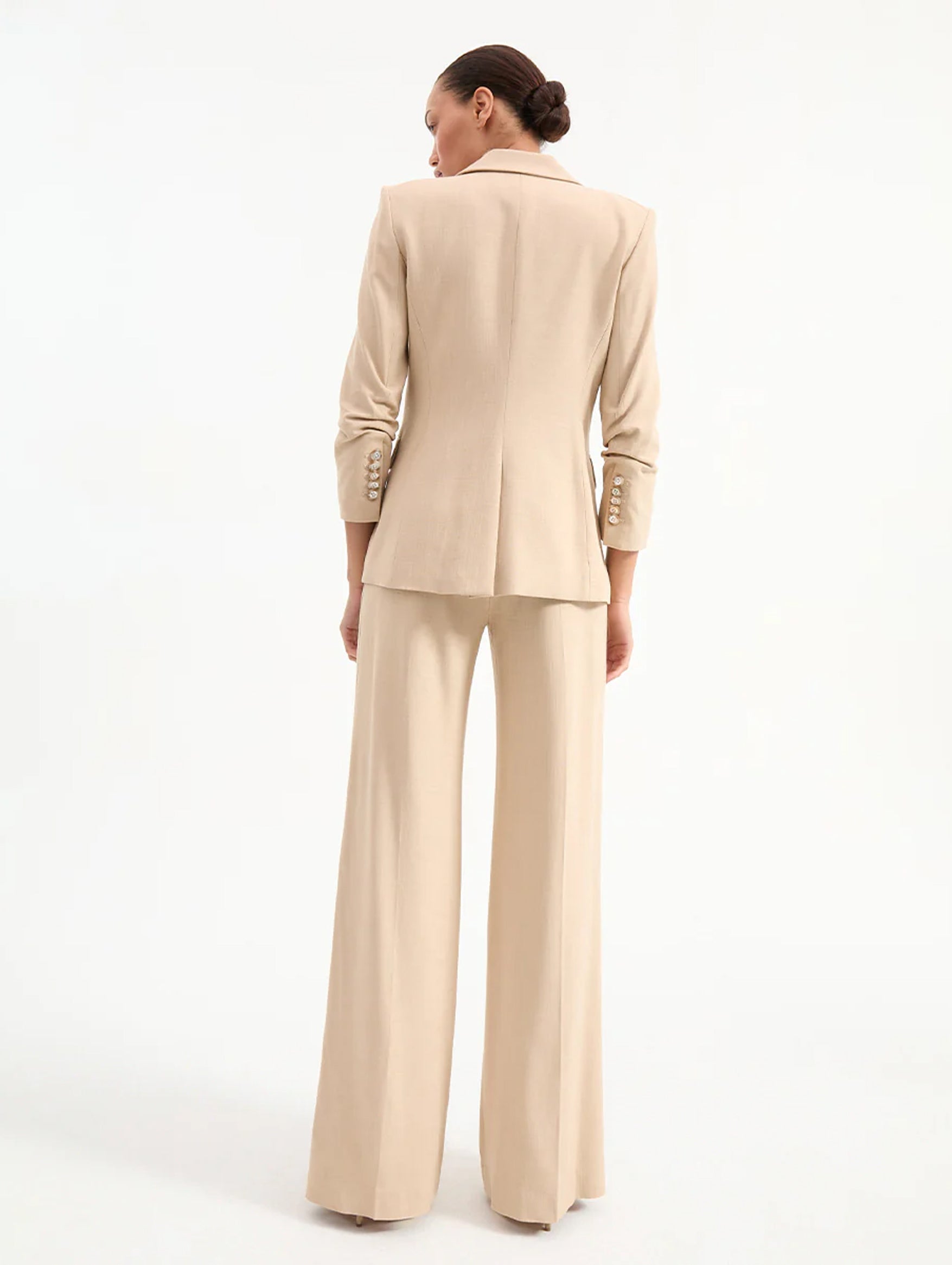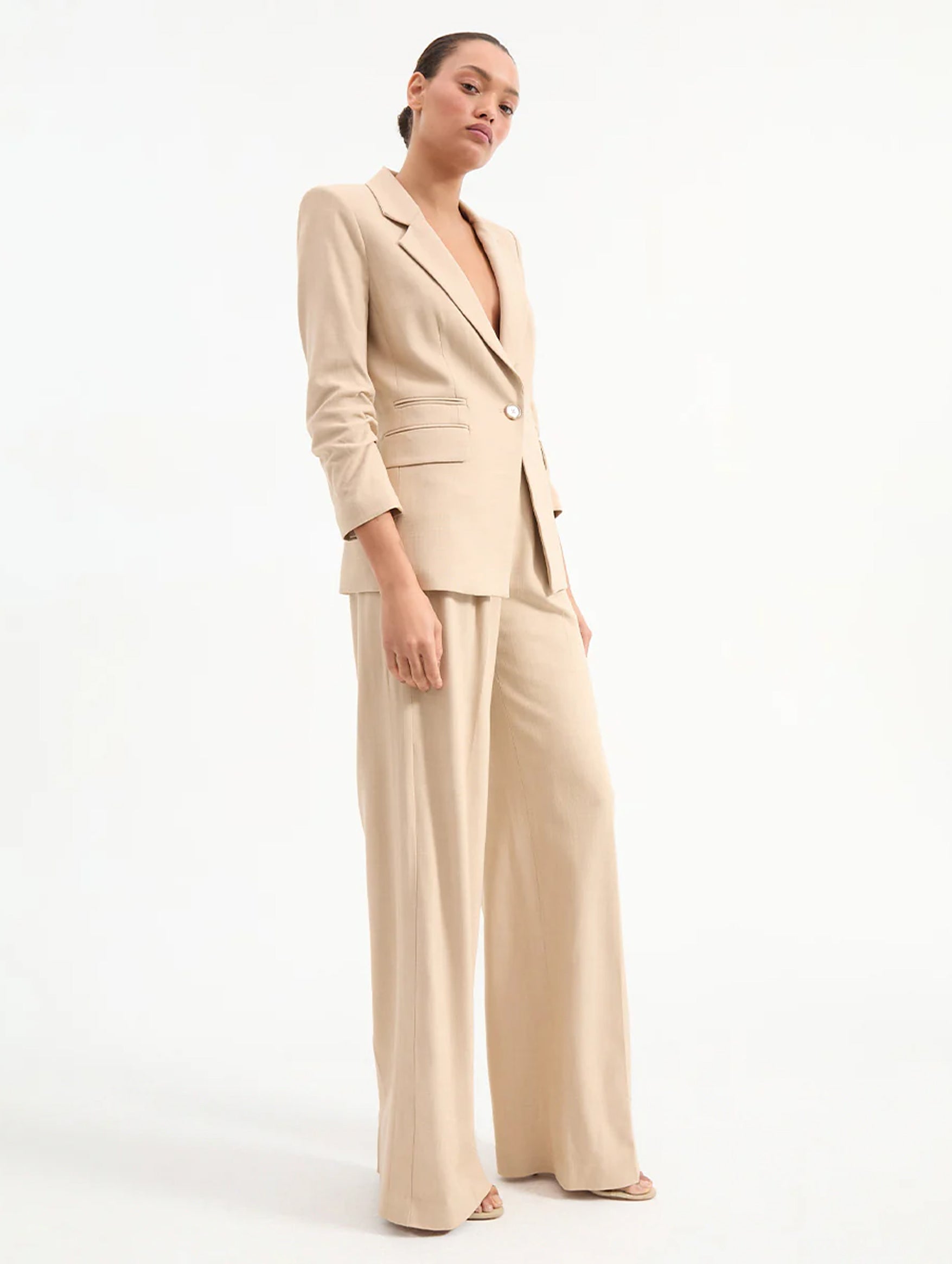 An essential that will quickly become your new go-to, Veronica Beards Battista Dickey Blazer has a sleek look and impeccable fit. Expertly tailored from a premium stretch blend, this Dickey style features a classic single-breasted silhouette and a luxe tortoiseshell button, while the pre-ruched sleeves add an element of nonchalance. Dress it down with jeans or pair with the matching pant for a modern update on the power pantsuit.