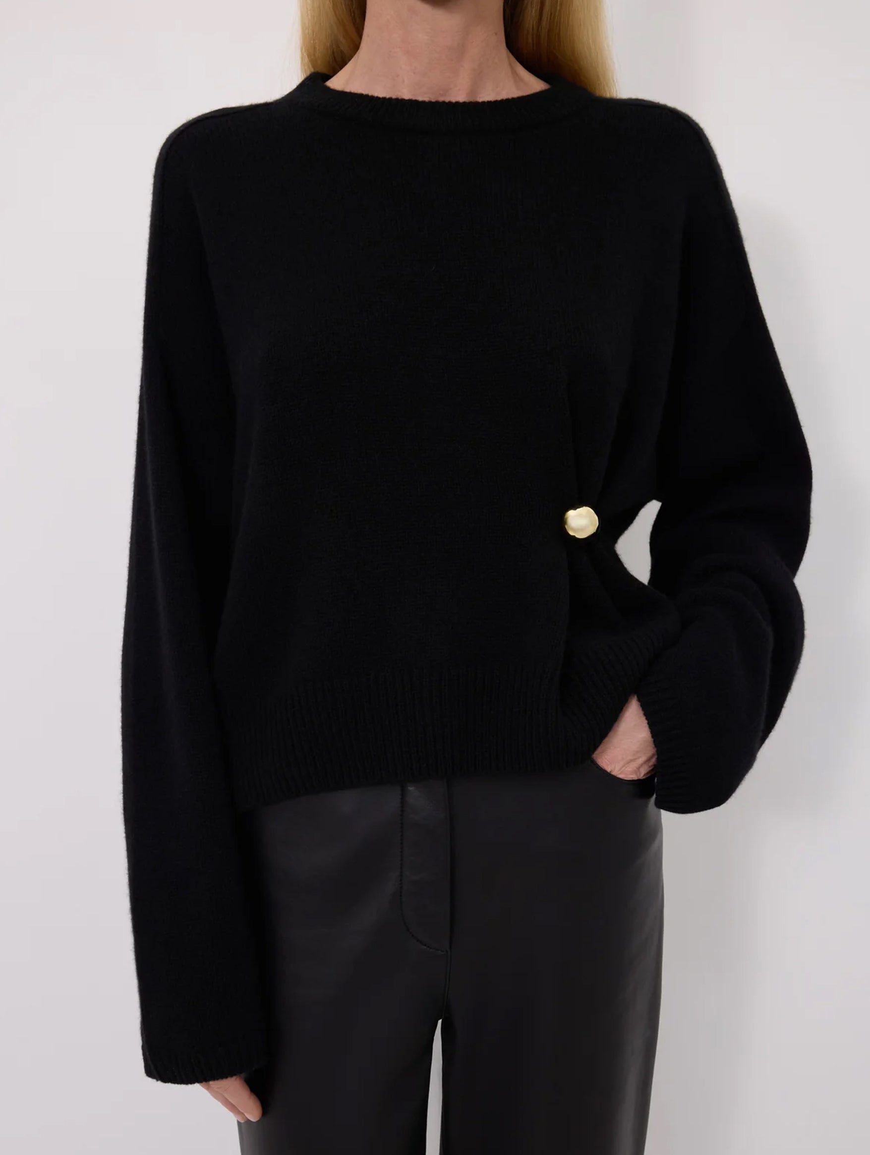 A design elevated by classic Loulou De Saison flare, the Bill Cashmere Draped Sweater is a favourite from their latest collection. Featuring a draped side with a gold-tone dome button, it transforms this cosy number into a directional piece of ready-to-wear. Crafted from luxe cashmere to be a transseasonal asset in every wardrobe.