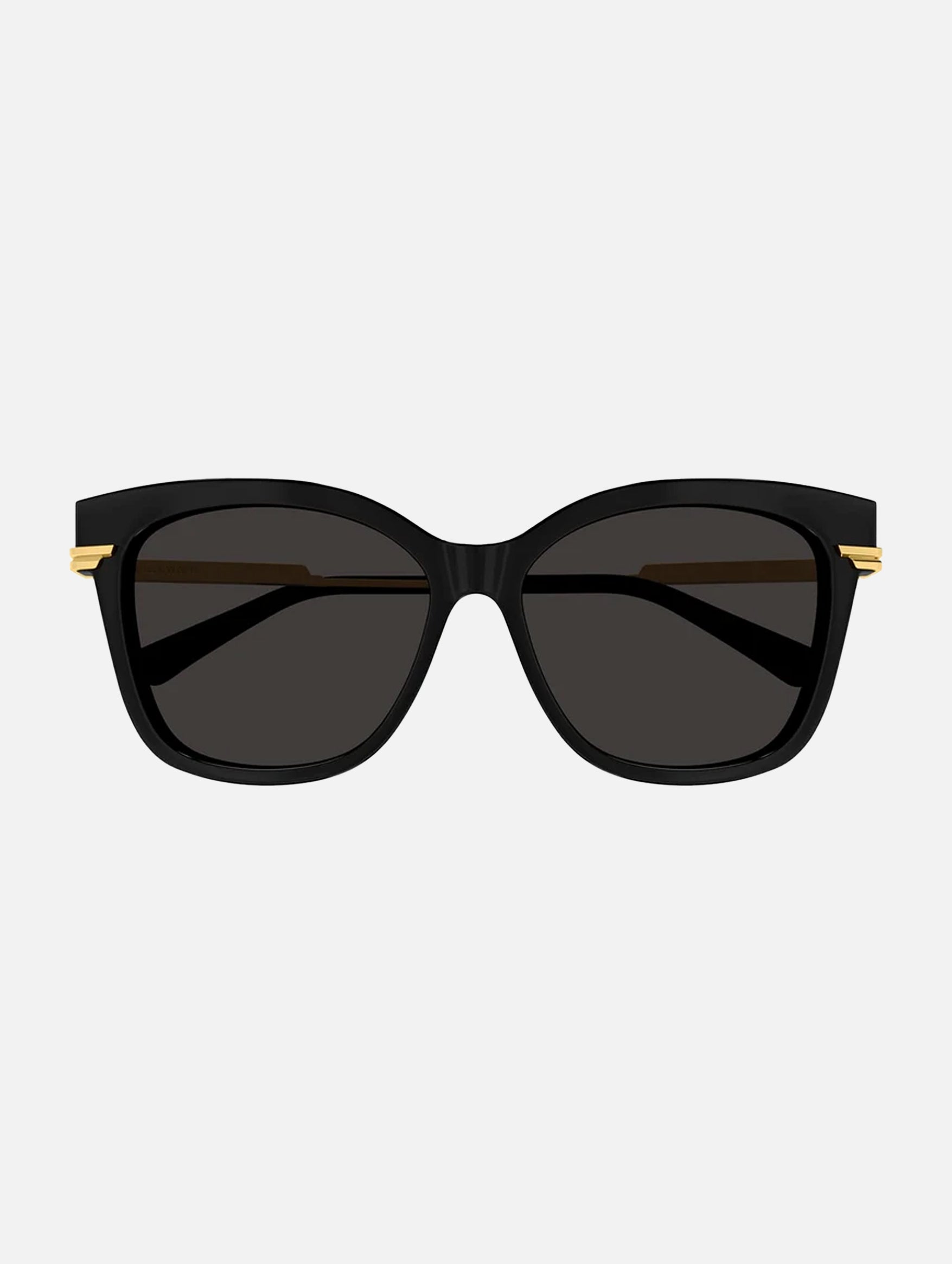 An edgy, easy-to-wear statement frame with subtle styling, the Bottega Veneta BV1296SA's are an iconic silhouette for every accessory line-up. These sunglasses have rounded cat-eye frames with bio-nylon lenses, and are finished with thin gold arms that have end covers in the same signature Bottega clack.