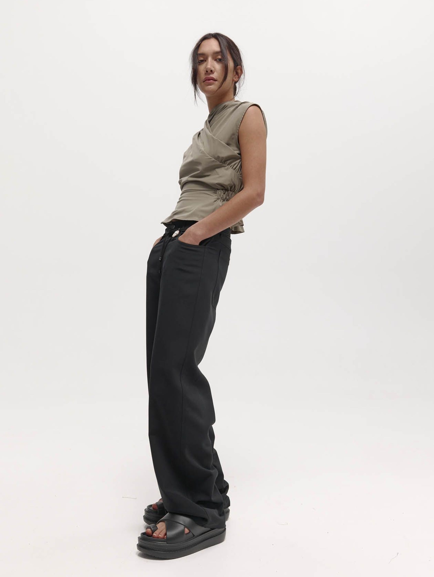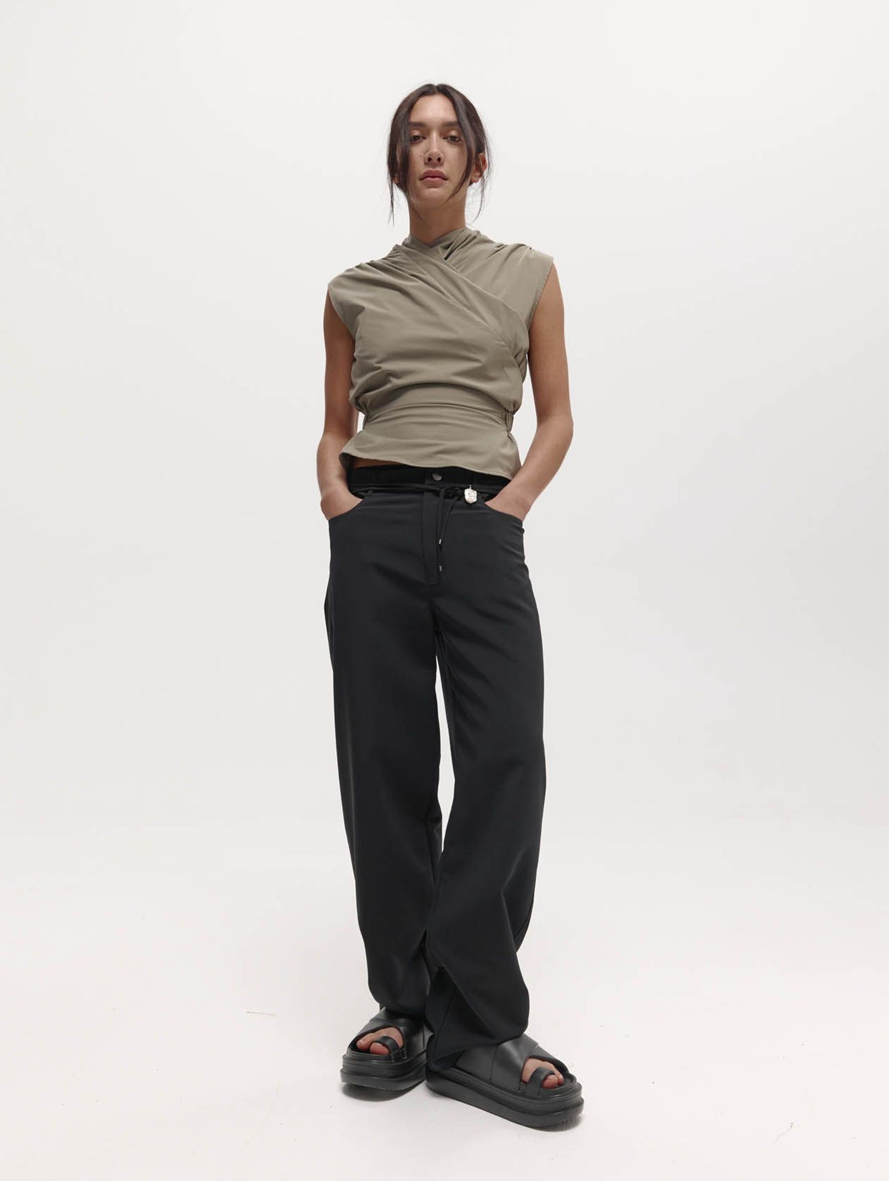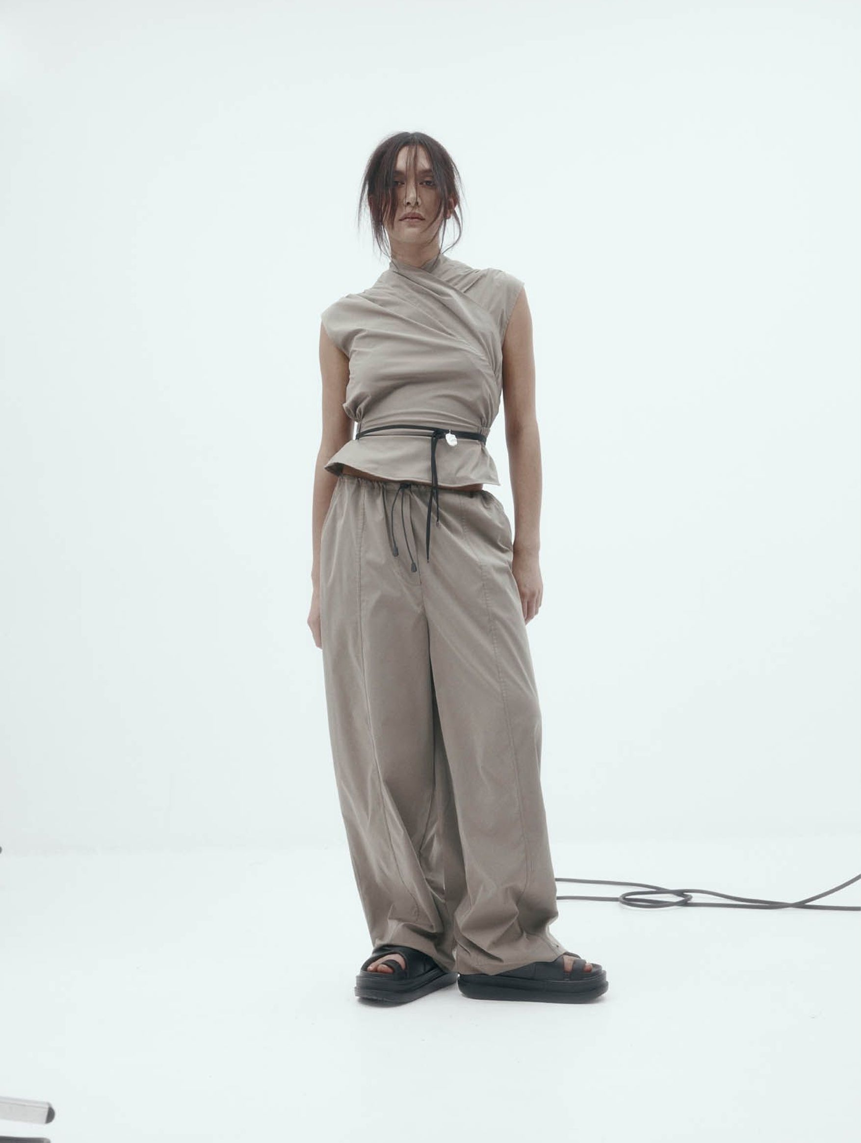 Echoing sculptural origins, Harris Tapper's Chaimberlain Top in Shroom is a best-selling wrap silhouette with an elasticated waist to allow ease of movement. Its recycled nylon finish takes this piece through many different daily needs. Gathered shoulders add understated volume, whilst the timeless hue adds a touch of femininity.