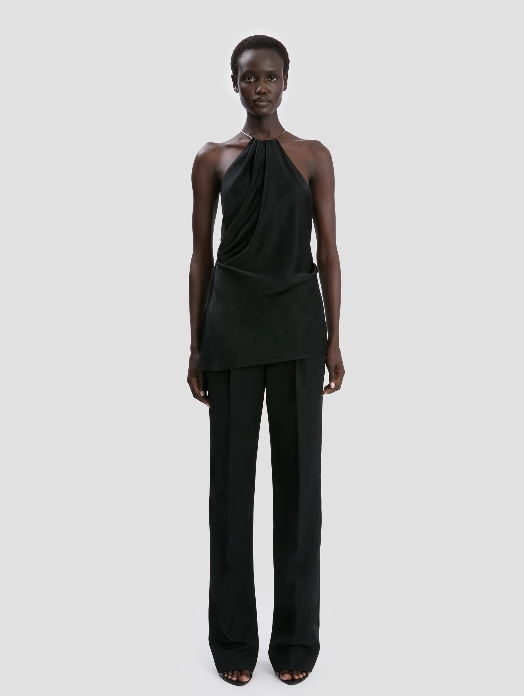 The Victoria Beckham Chain Detail Cami Top in Black is a sleek essential with a subtly elevated edge. Crafted from fluid fabric with refined tailoring, it features delicate chain straps that add a modern, polished finish. Wear it under a tailored blazer or with wide‑leg trousers for understated elegance that feels as effortless as it is chic.