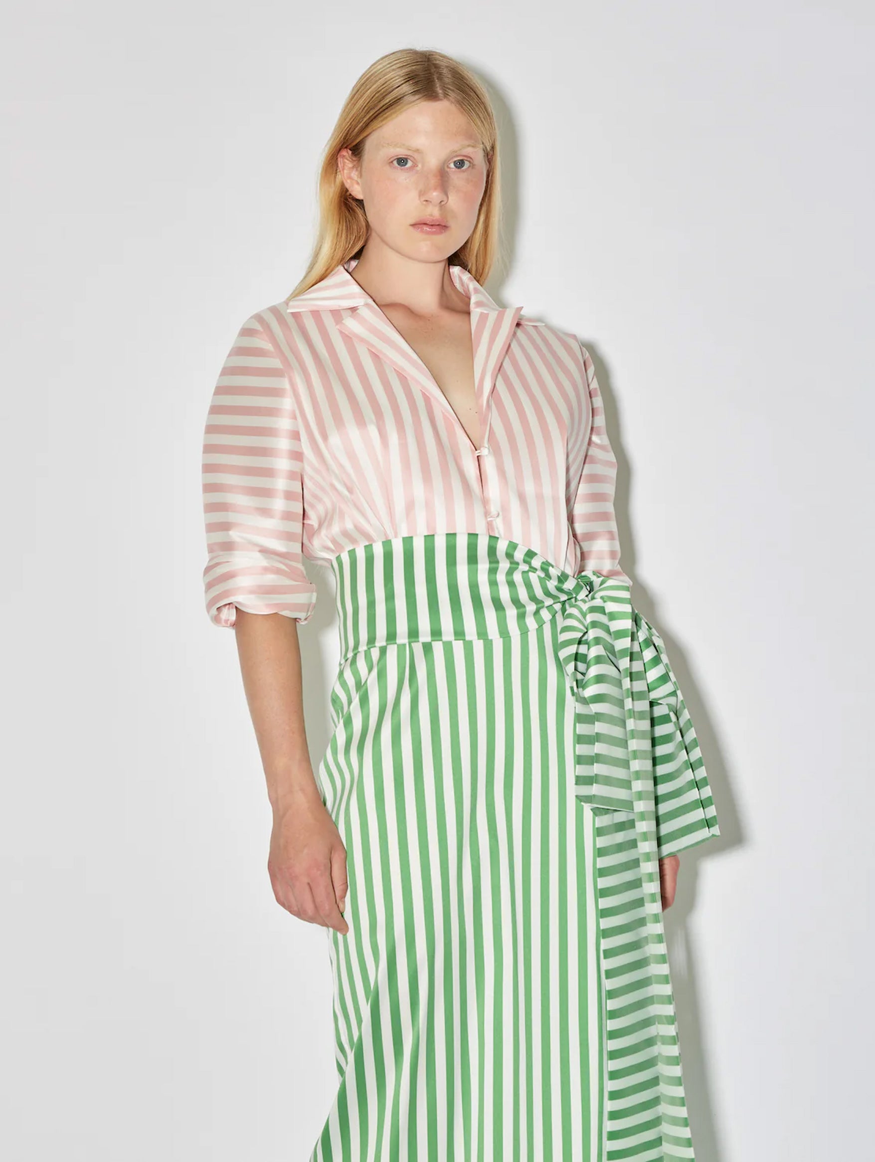 Get notified when Claire Stripe Dress in Grass Green & Blush Pink - 38 (S) / Multi comes back in stock.