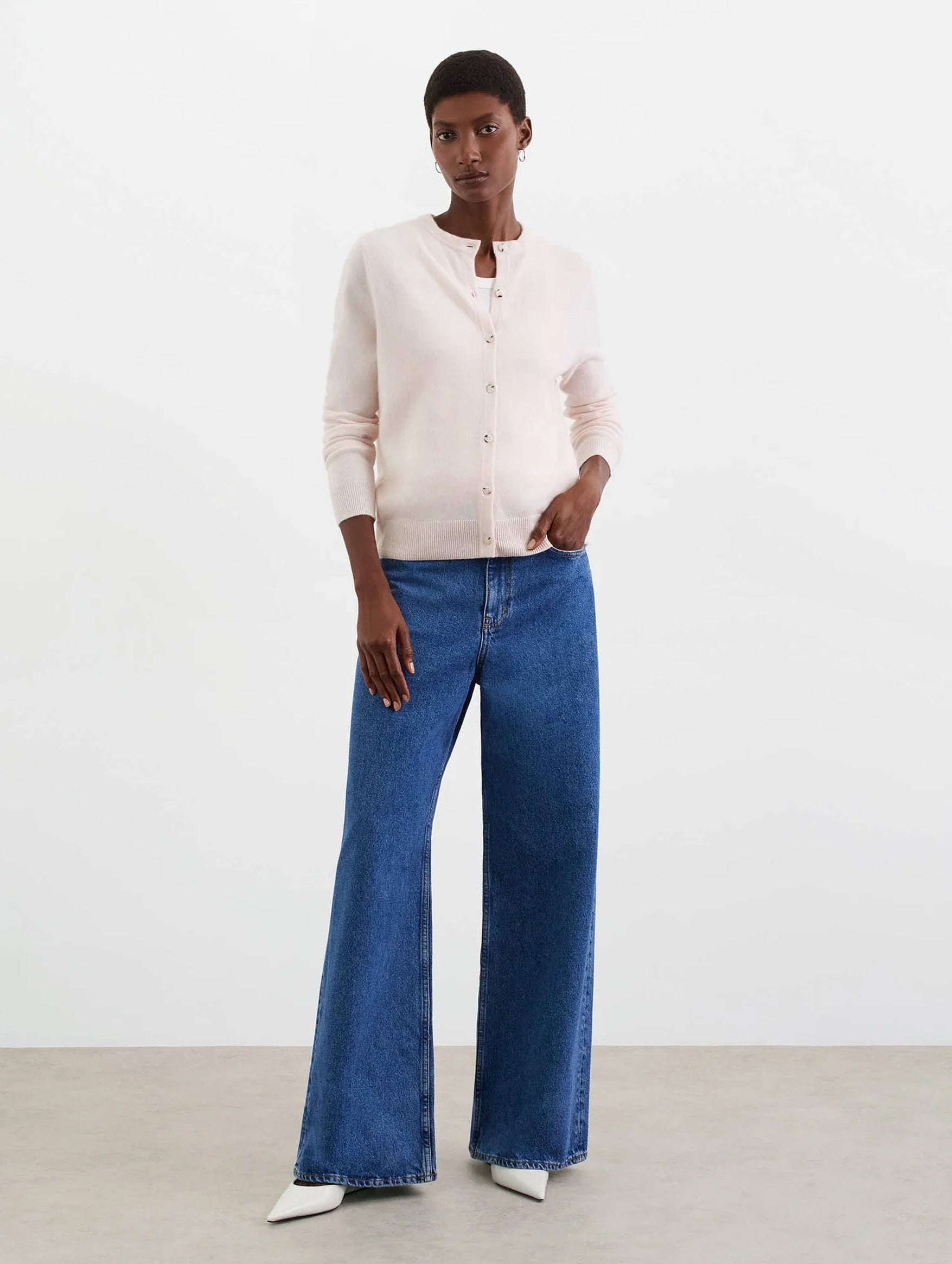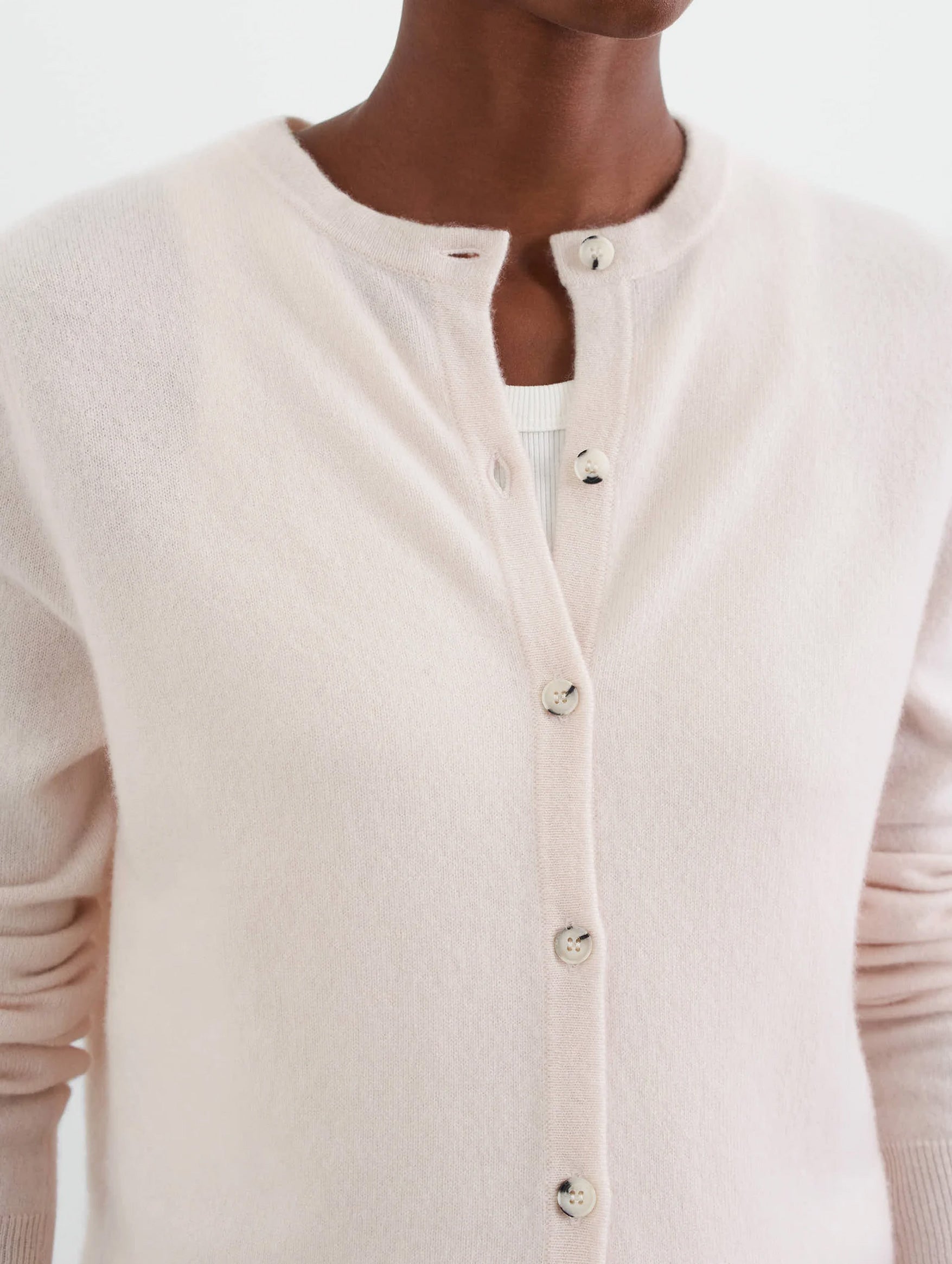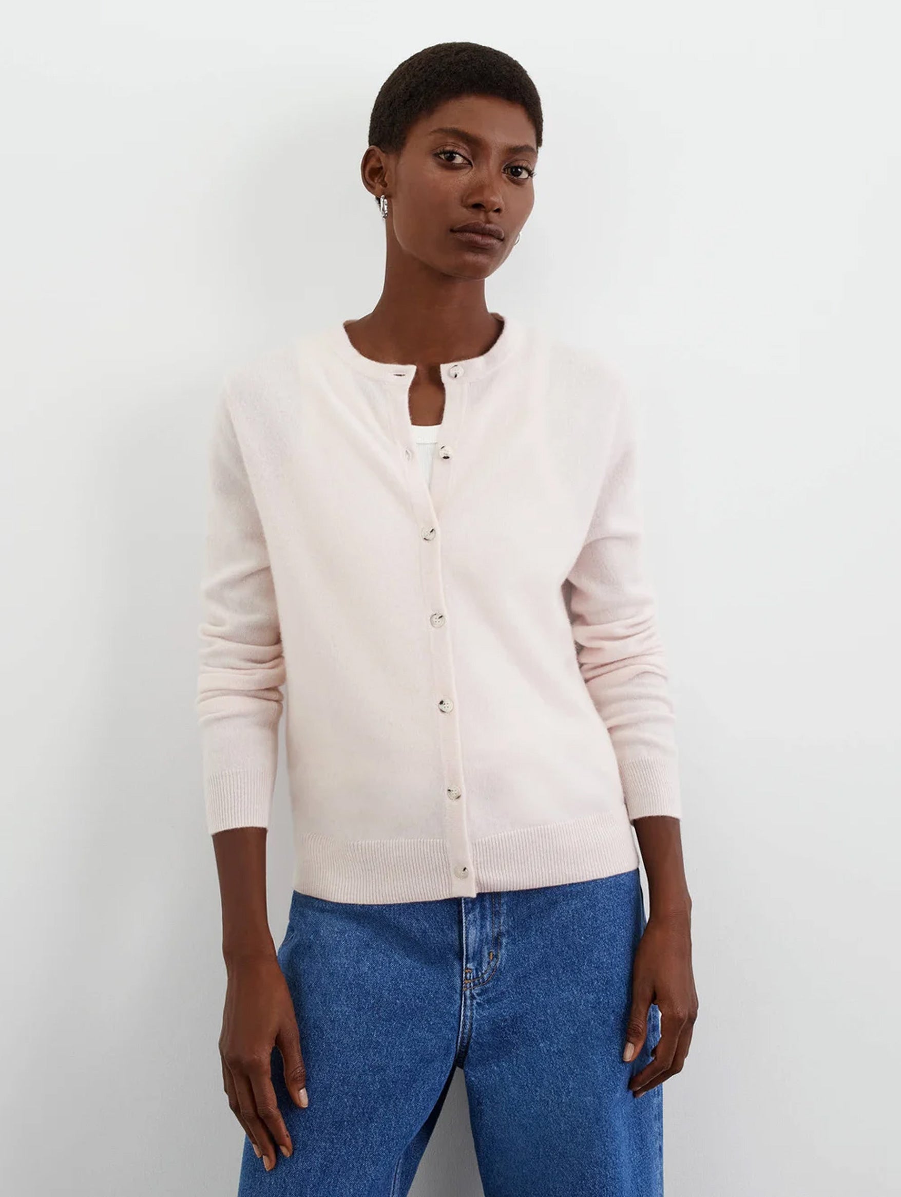 The Soft Goat Cardigan is a wardrobe must-have for every season. Knitted from a midweight cashmere, the slim fit cardigan features tonal buttons at centre front and ribbed hems. The perfect layering piece, style buttoned up as a top or wear open over a luxe basic with tailored trousers.