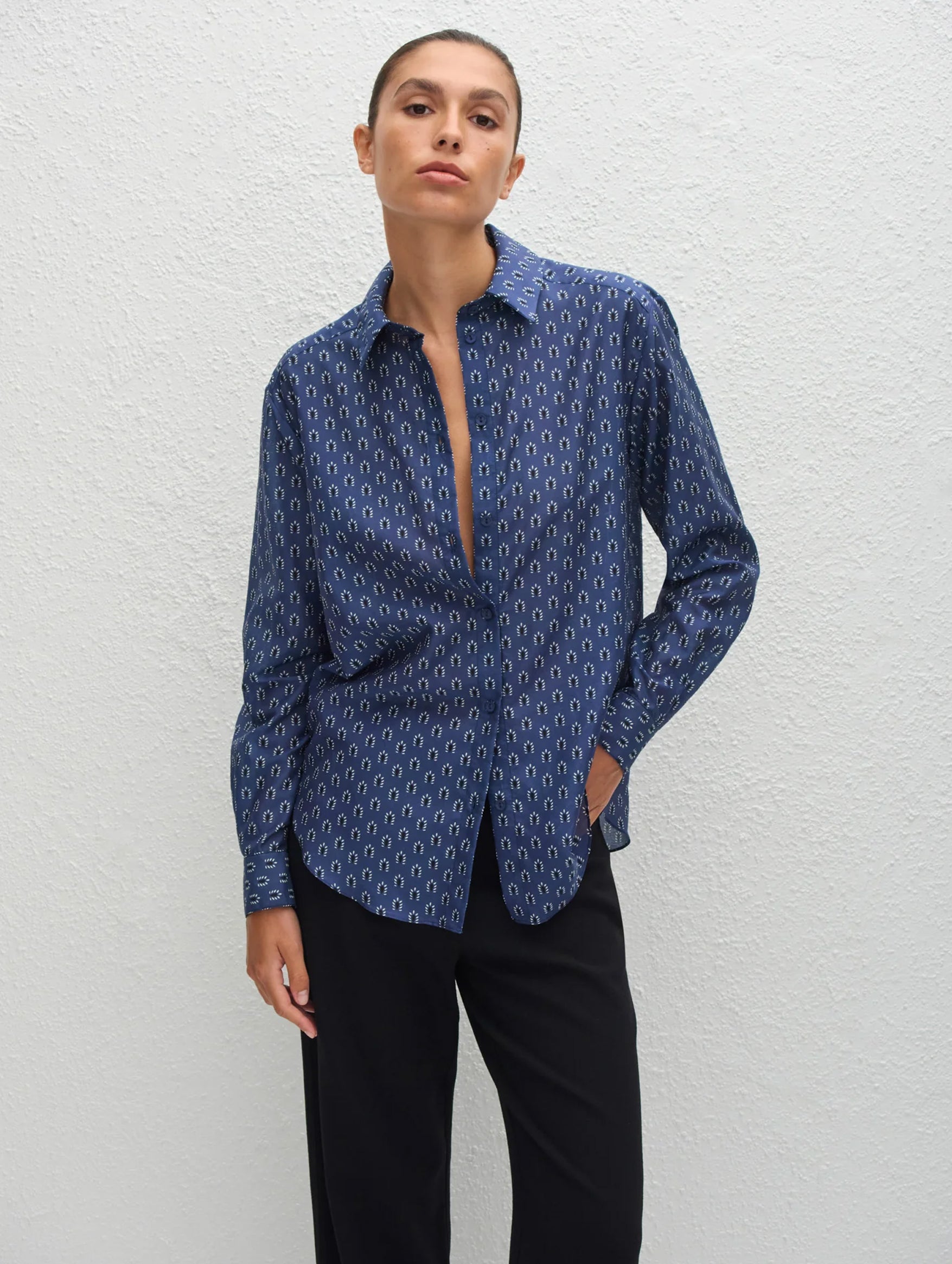 Easy without compromise, Matteau's Classic Shirt in Cassis was inspired by a vintage men's style rendered in this seasons captivating print. Made from their lightweight organic cotton-silk voile, it has an exposed button placket and side splits. Style tucked into relaxed trousers with a classic belt for an elevated workwear formula.
