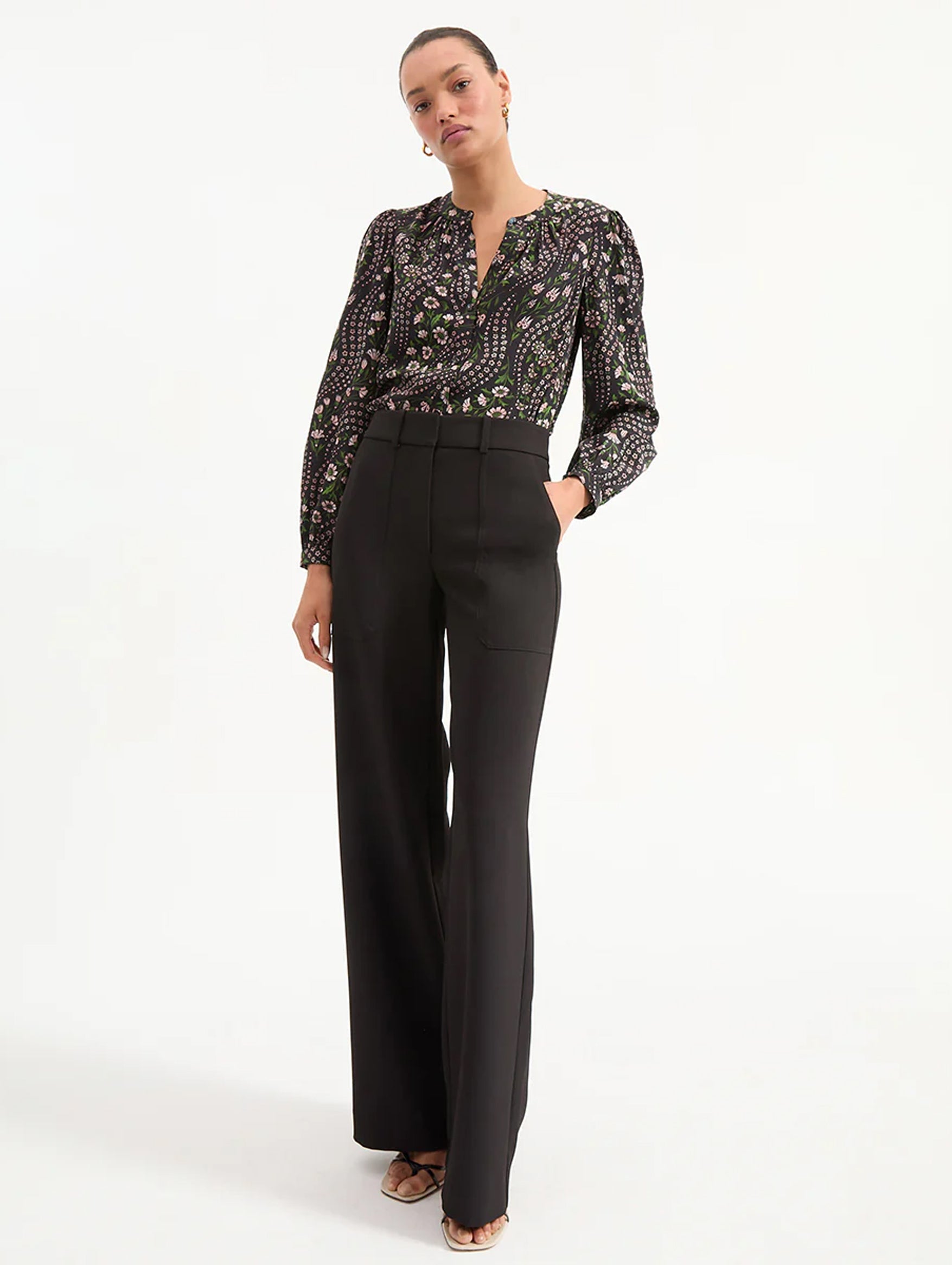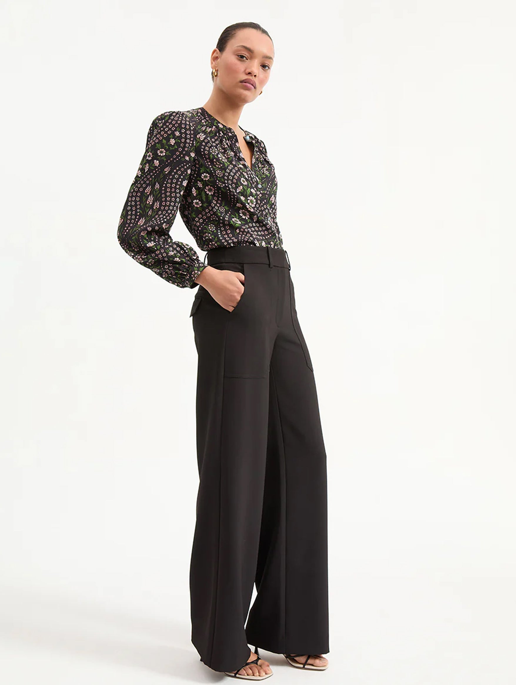 The perfect relaxed pant, the Cole Wide-Leg from Veronica Beard exudes simple elegance to be paired with every moment. Made from a premium stretch blend, the silhouette is designed for ease with a wide waistband and a beautifully draped, wide-leg silhouette. Roomy side pockets complete the look, these are the ultimate in versatility to become your 24/7 pant.