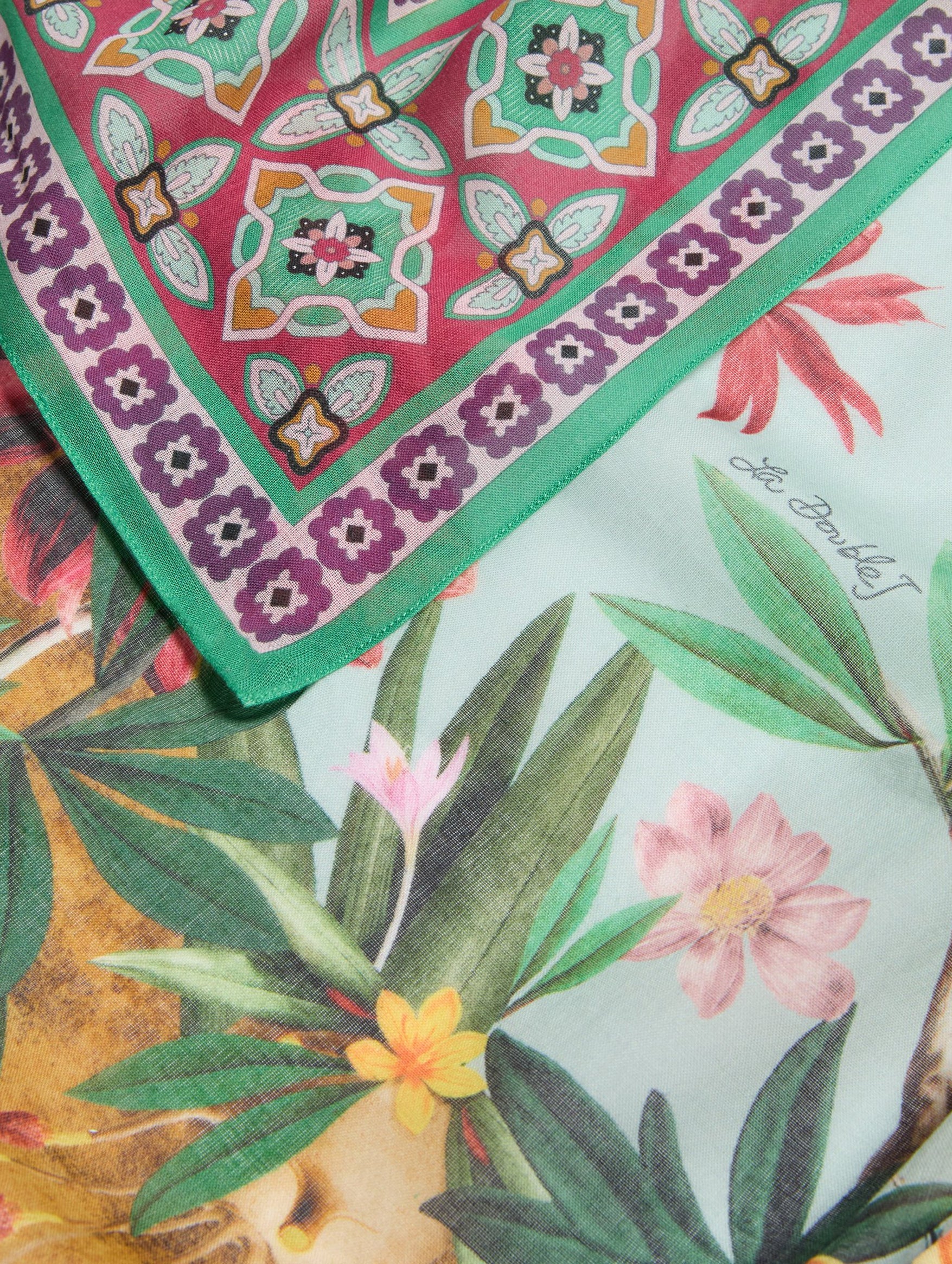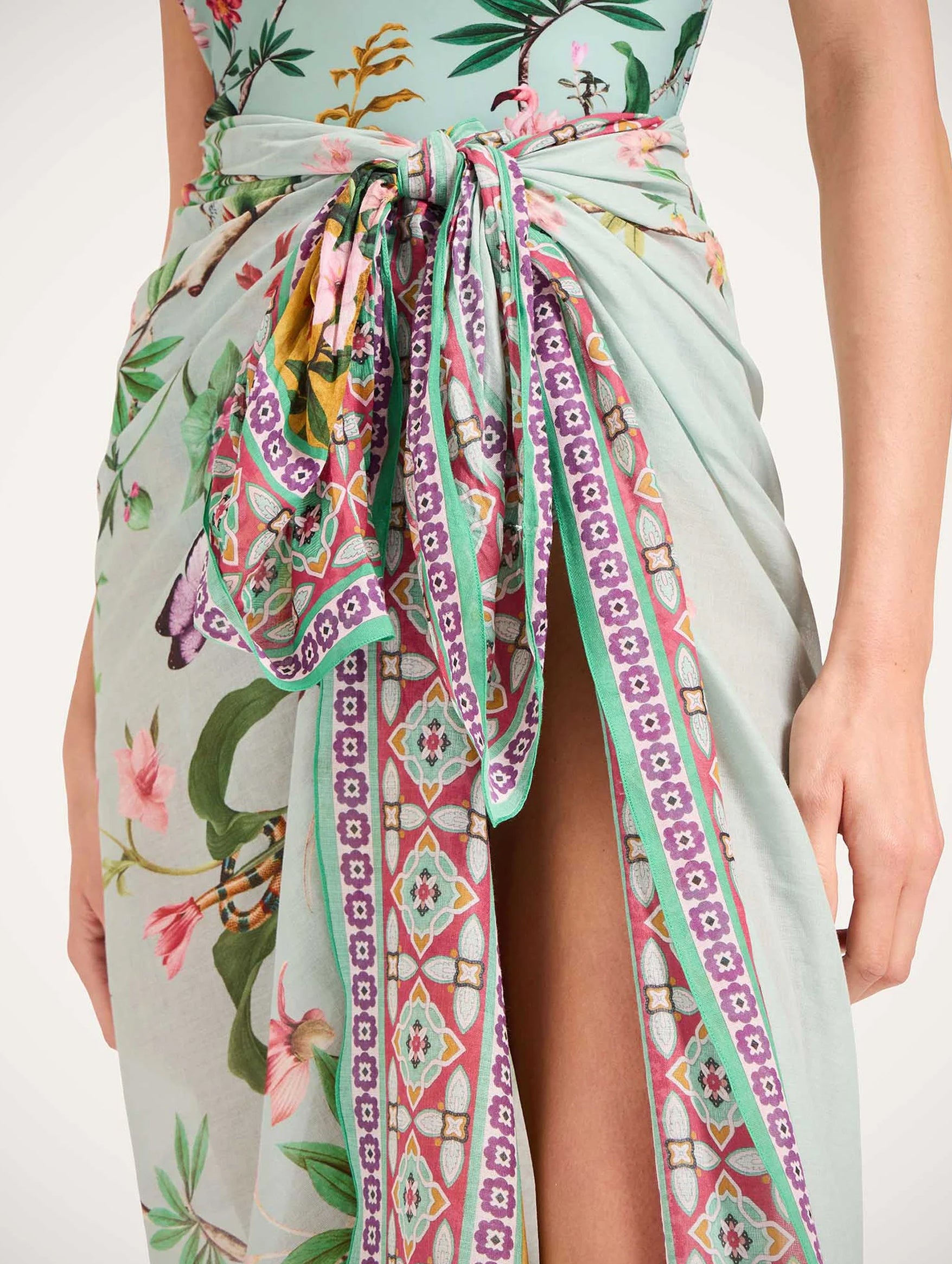 The La DoubleJ Cotton Pareo in Zooflora is an elegant Italian-made silk voile scarf that channels sun-drenched sophistication. Draped gently around the neck, tied at the waist, or looped through your bag, it brings effortless Dolce Vita charm and sculptural ease to any look. The perfect resort attire to add style to every moment.