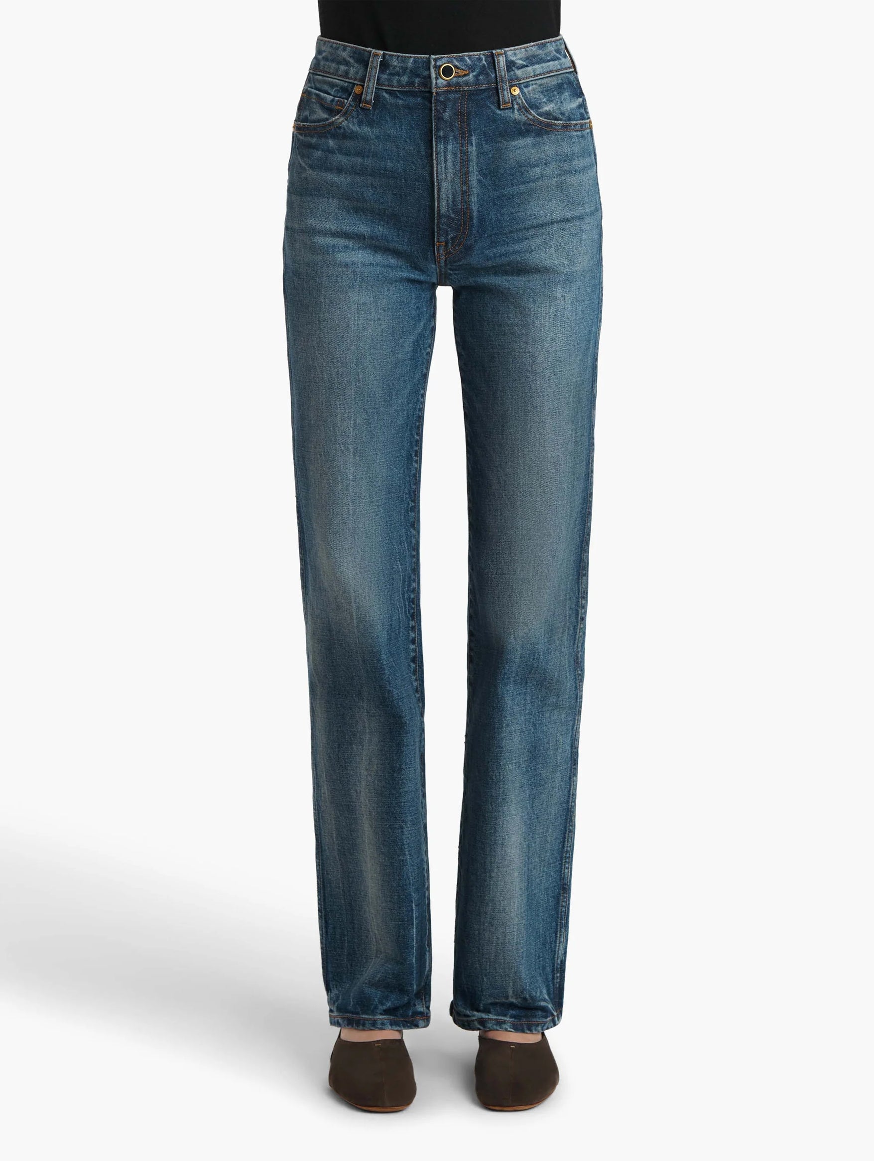 The Danielle Jean in Lykens from Khaite delivers elevated denim with a refined edge. Cut in a clean, straight silhouette and finished in a soft washed Lykens tone, it balances effortless wearability with modern tailoring. Pair it with a tucked‑in blouse or crisp shirt for a quiet, polished look, these are a wardrobe essential that makes jeans feel elevated and intentional.