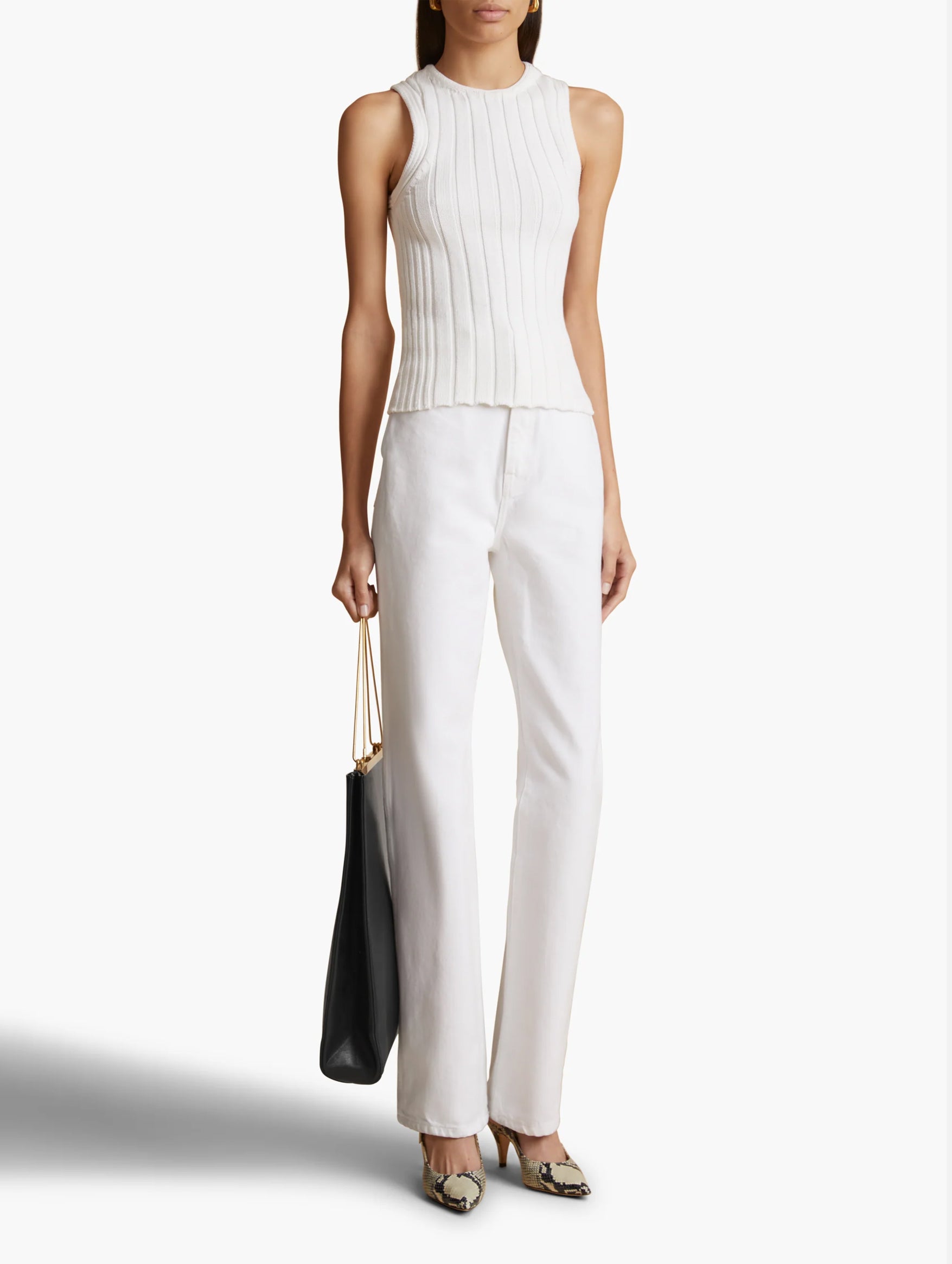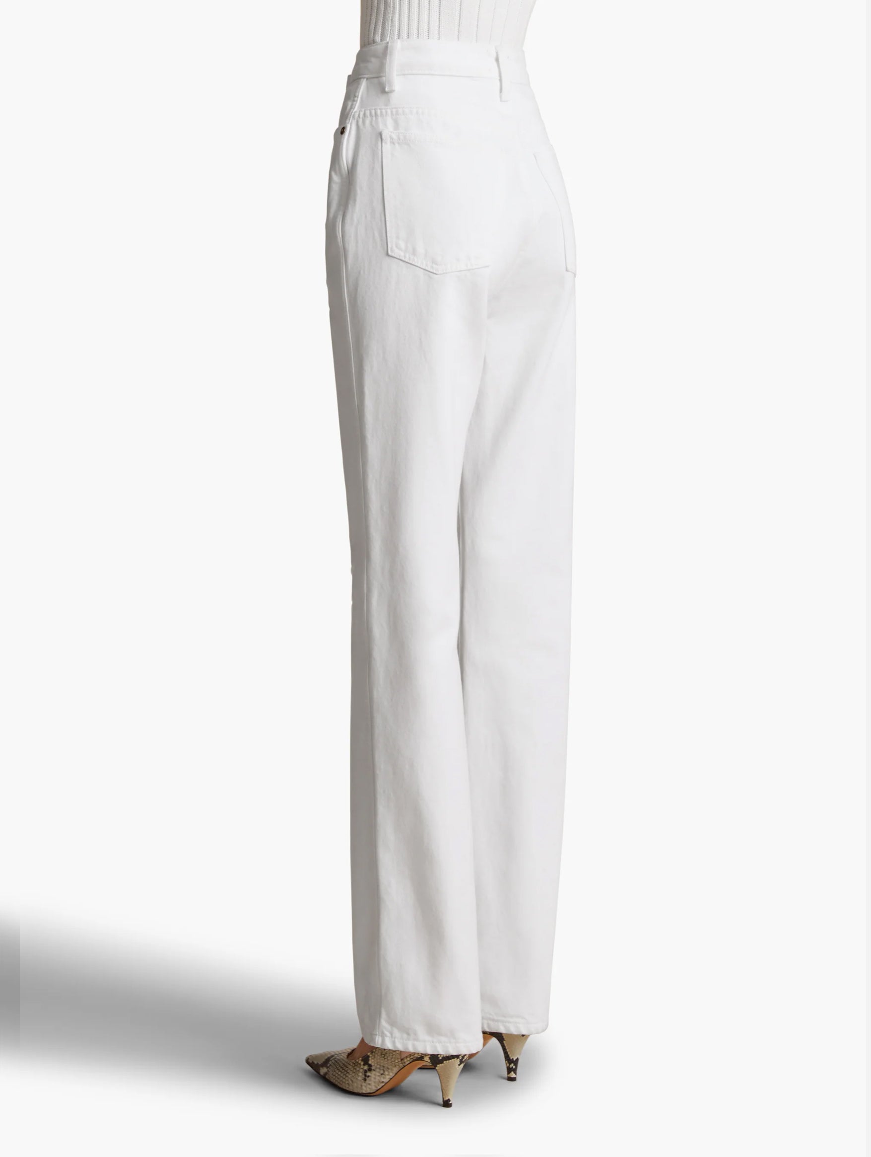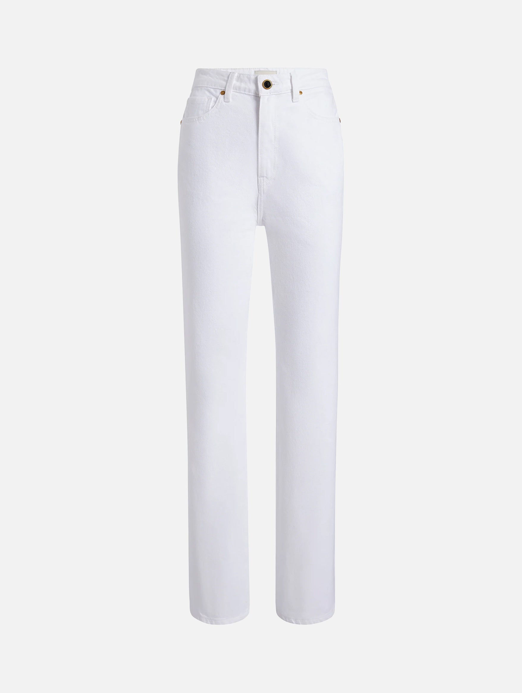 Designed to visually elongate the legs, the Danielle Jean in White from KHAITE easily flatter the feminine form with a stovepipe silhouette. The robust structure of pure cotton denim is hand-finished with an enamelled button of antique brass. Crafted in a classic white adding a crisp element to its classic visual.
