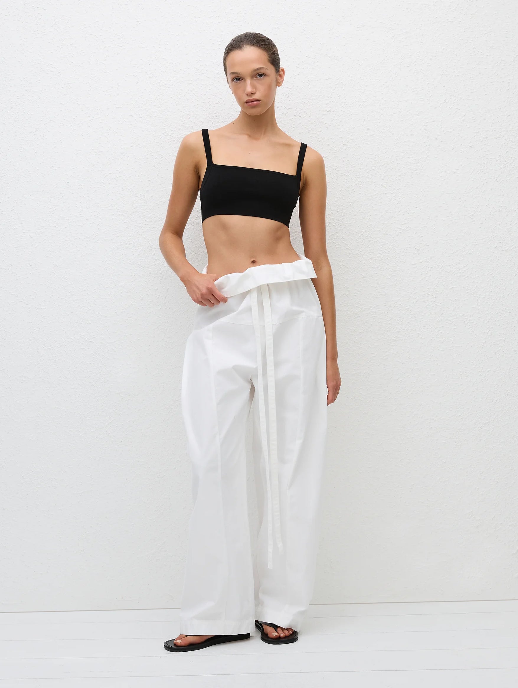 A pull-on fishrman-style pant, the Fisherman Drawcord Pant from Matteau features a drawcord channel with a wide self-tie and a fold-over waistband, with a wide-turned hem. These pants are garment dyed and washed with BCI cotton for a worn and lived-in feel. They have a super relaxed vibe and are easily paired with a simple tank and summer sandals.