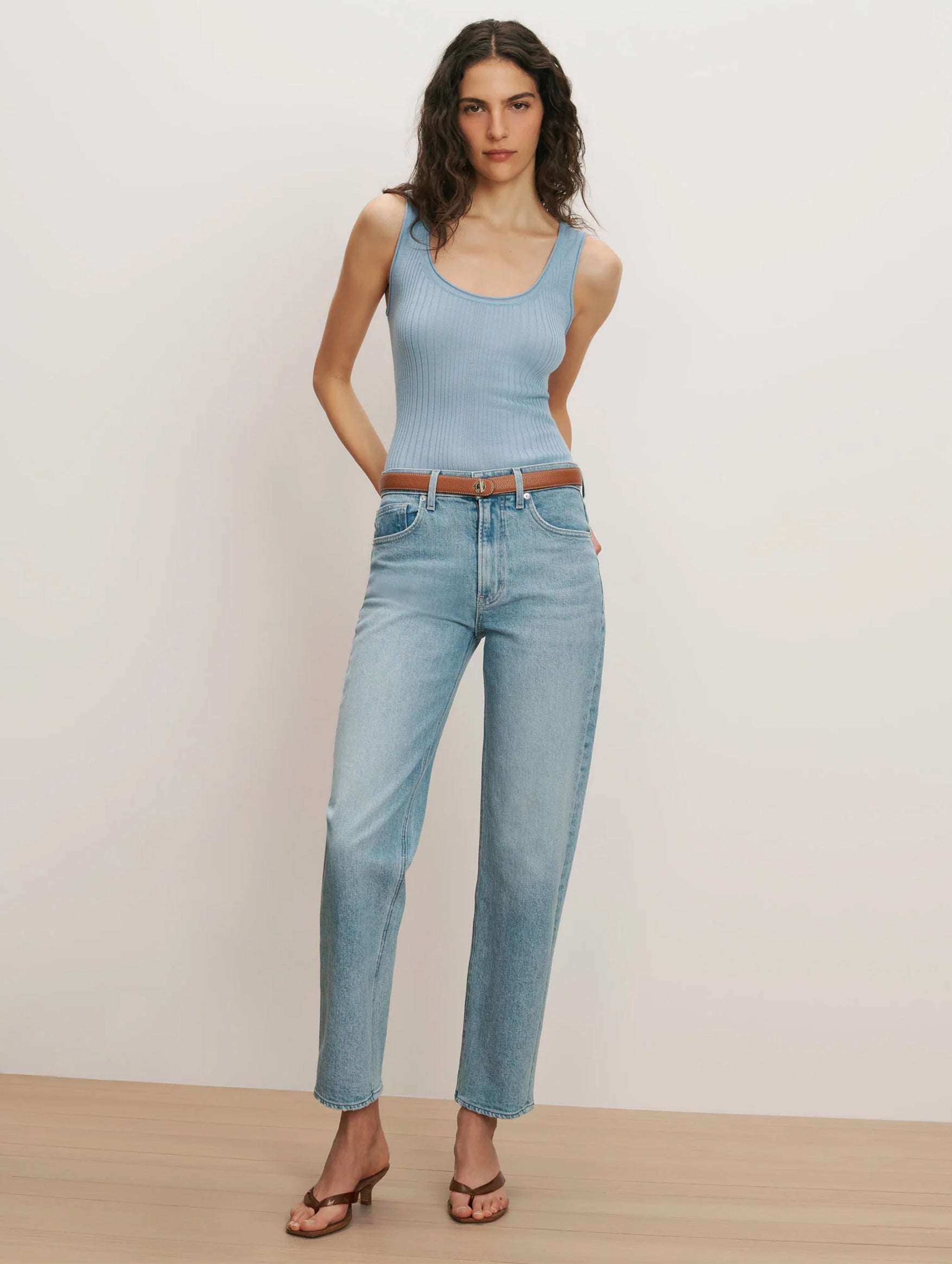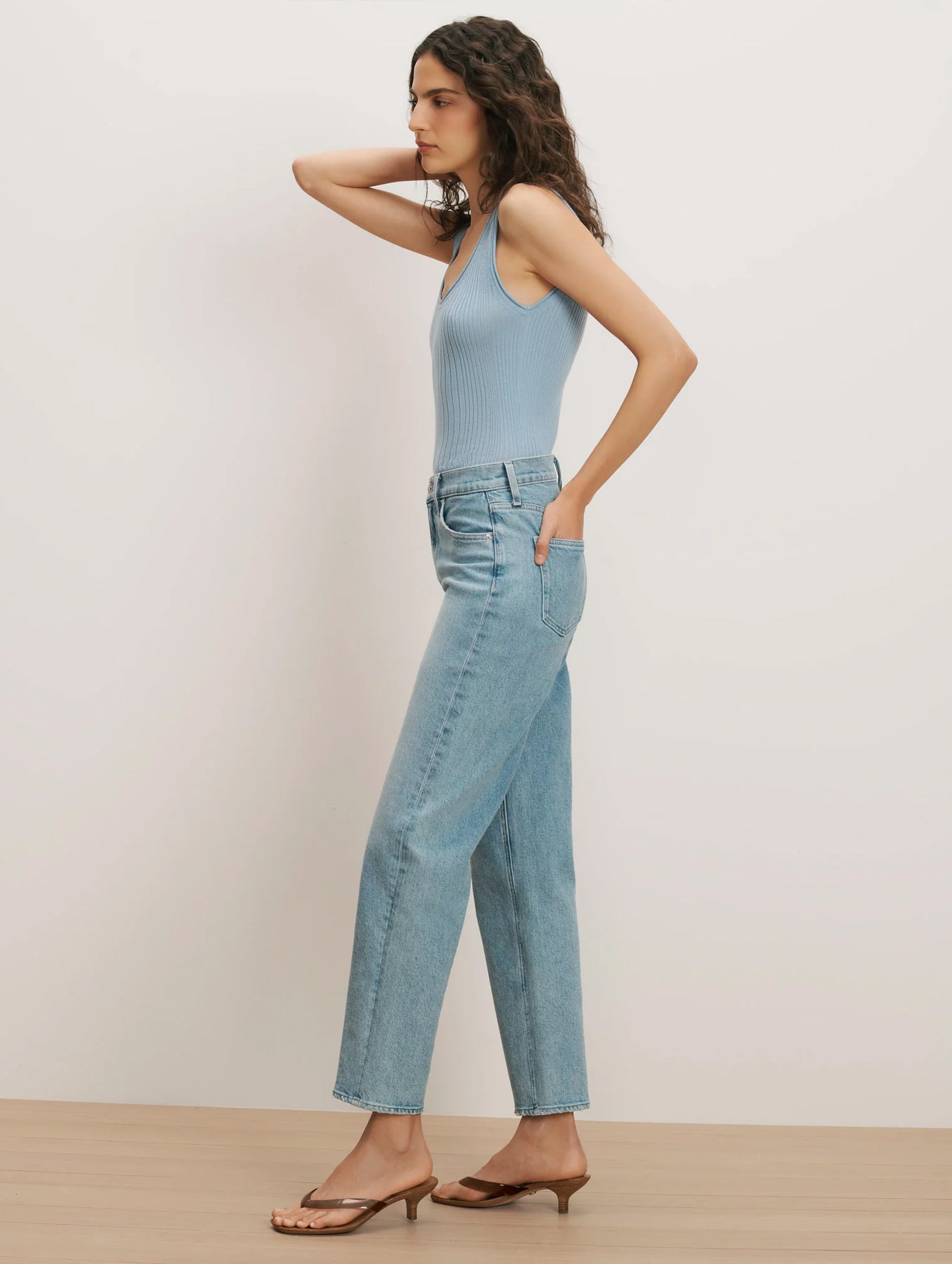 Modern and flattering, the Veronica Beard Harley Arc Leg Jean in Big Splash is crafted from Italian stretch denim for a comfortable, structured fit. Featuring a high-rise waist, cropped barrel leg, and curved side seams, it creates a contemporary bowed silhouette. Pair with ballet flats for daytime ease or heels for added polish.