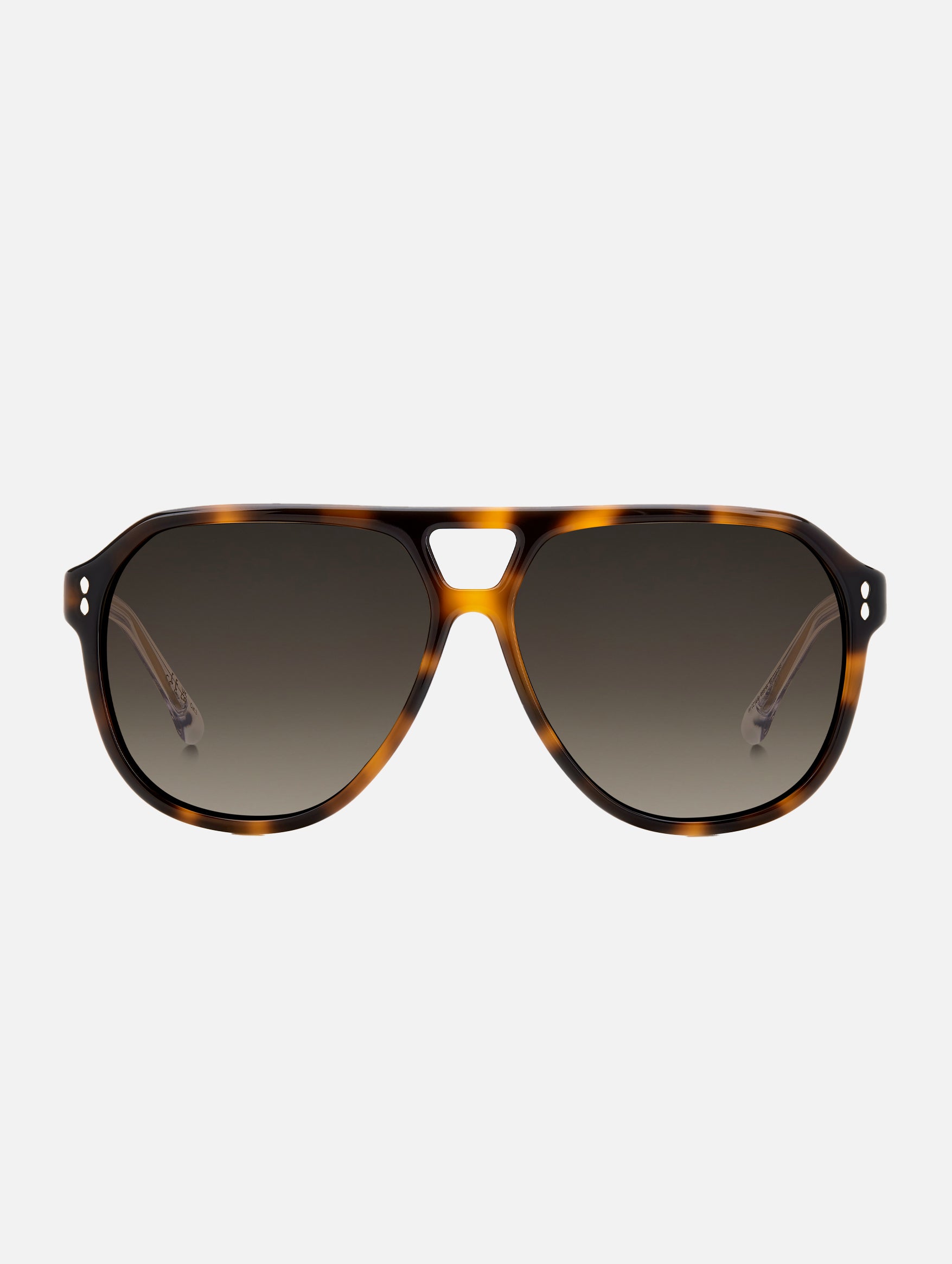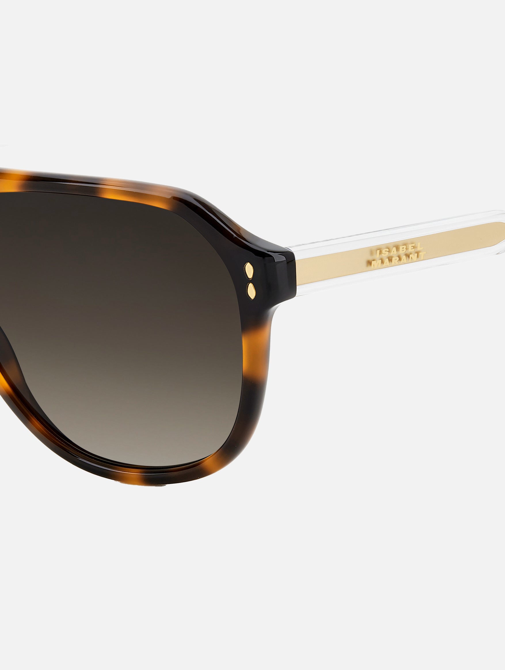 "The In Love" eyewear line from Isabel Marant strikes the perfect balance between new and iconic, streamlining a selection of simple acetate frames with ultra-smooth fronts and slim profiles. Gradient effects and two-tone colourways reverberate modern energy, while clear temples with metal wire cores add a delicate touch. These sunglasses stand out with a striking pilot silhouette, honouring the brand's hallmark motif with leaf-shaped trims and end tips.