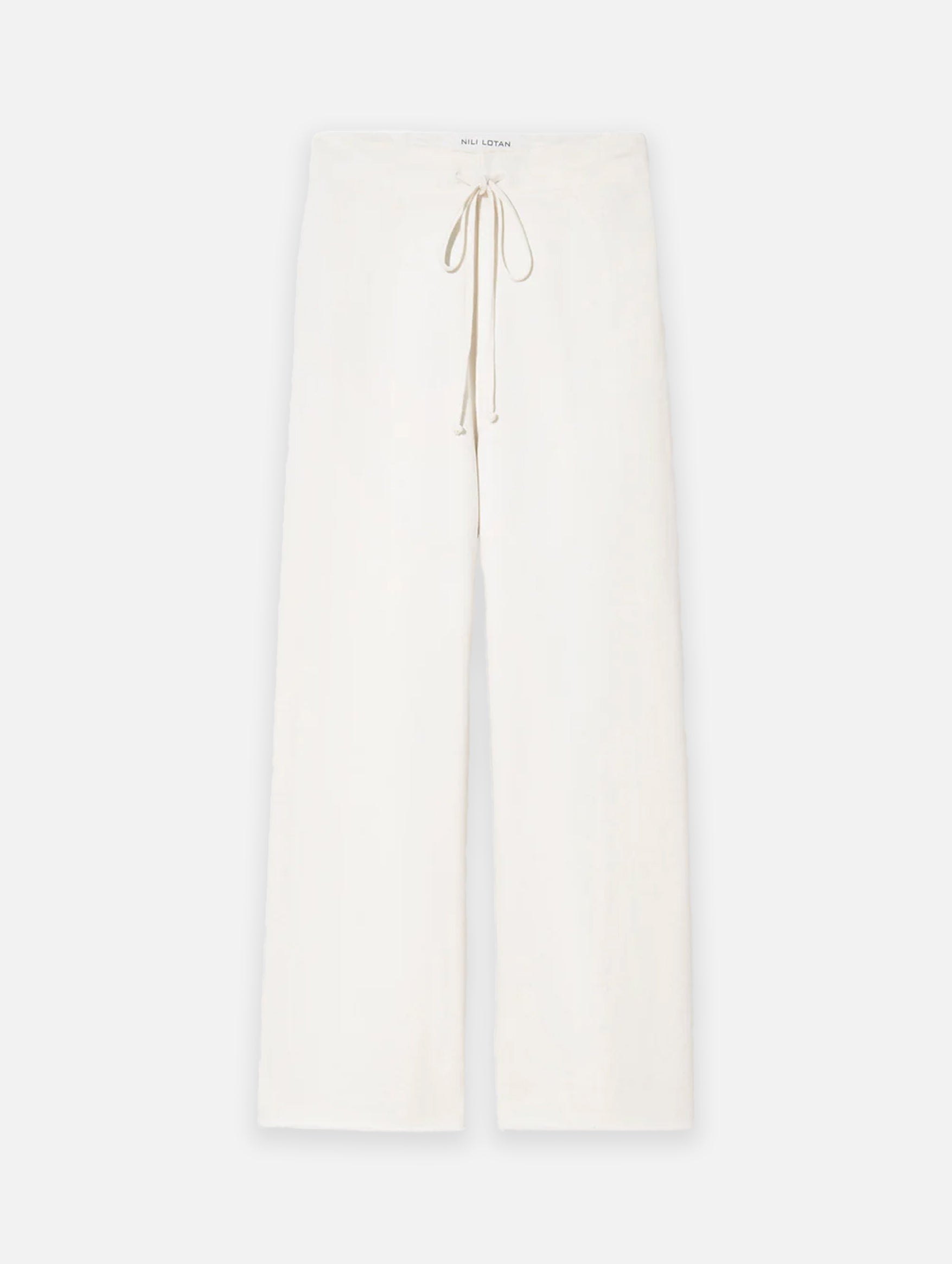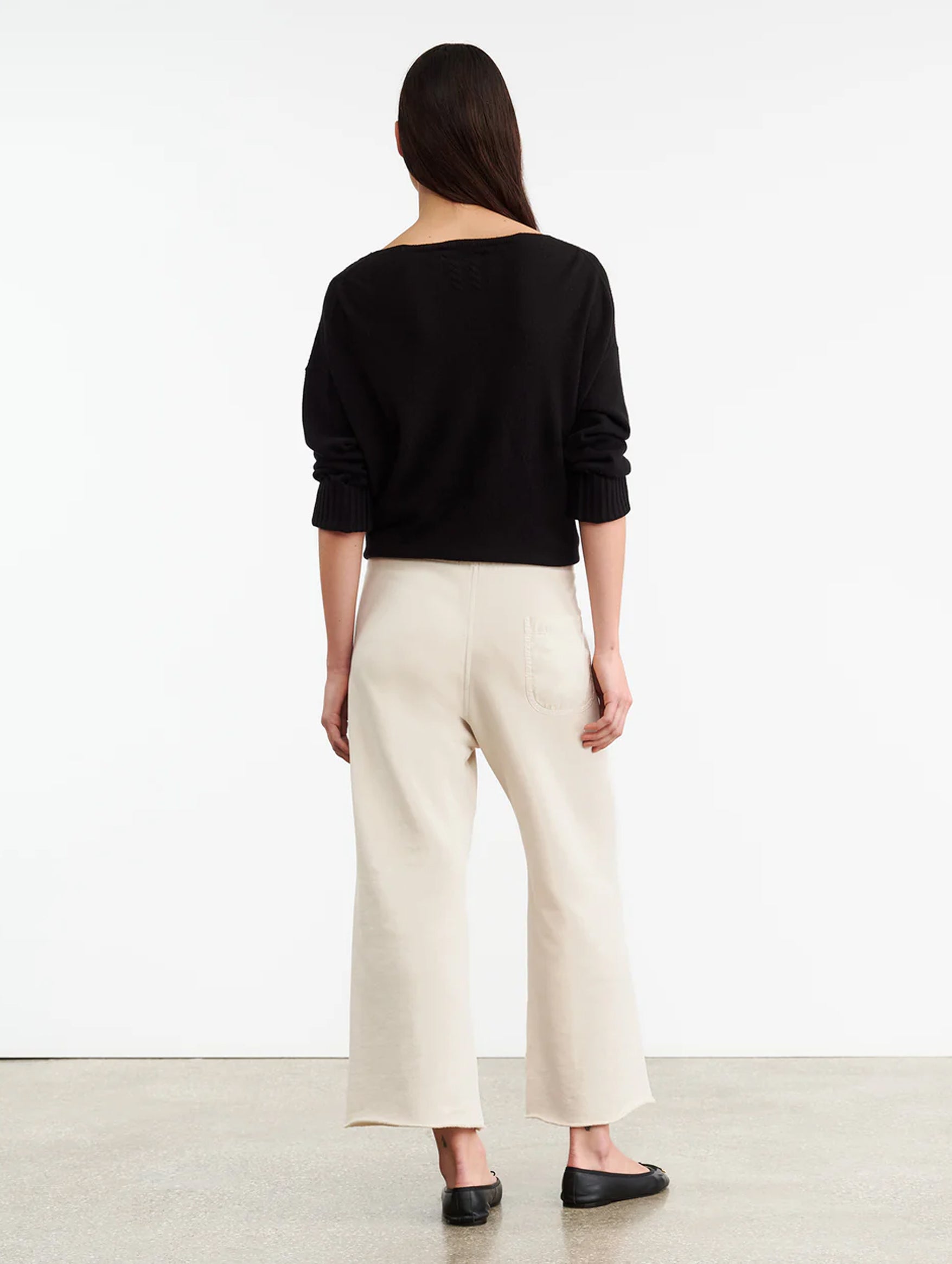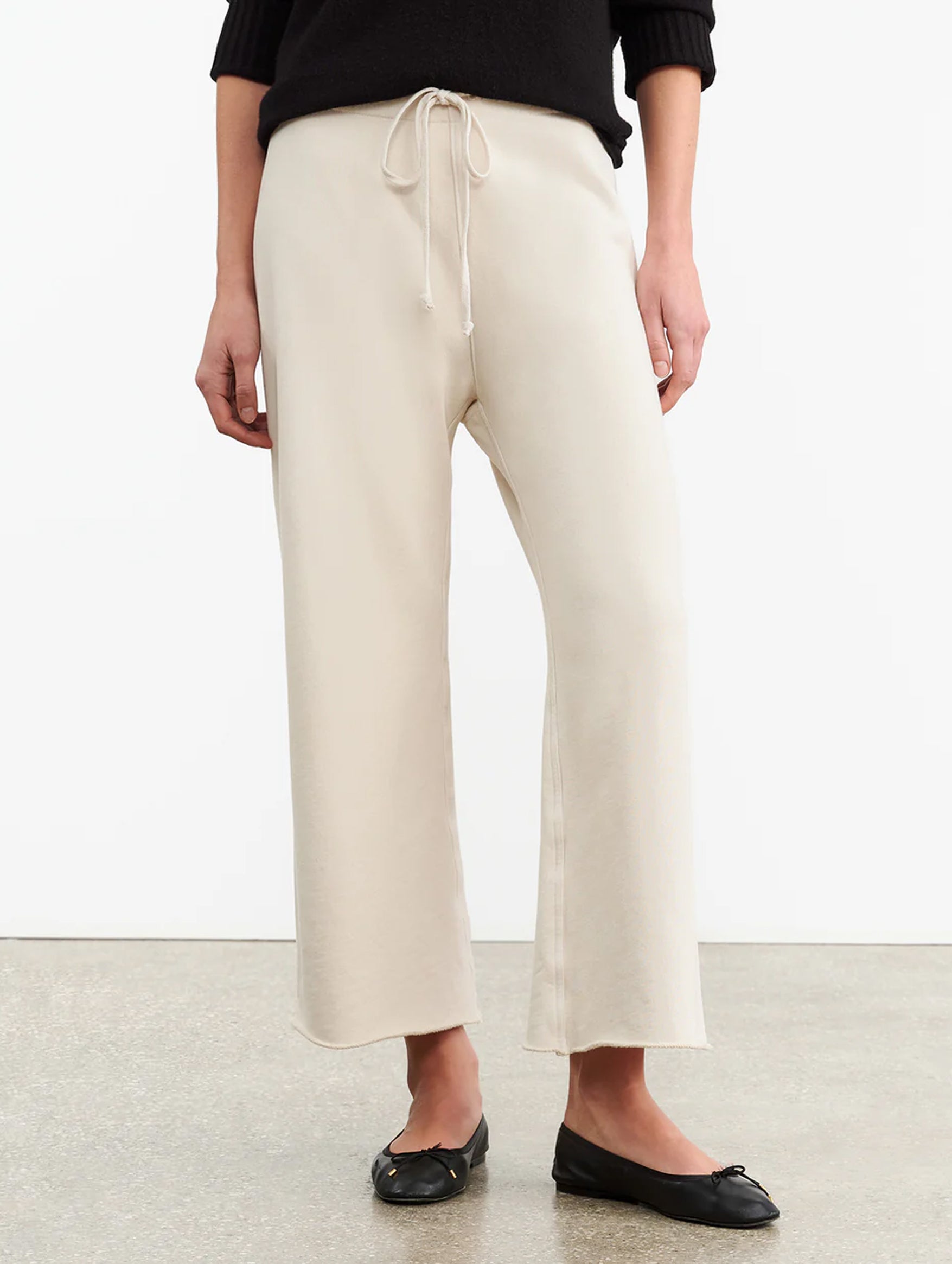 The Nili Lotan Kiki Sweatpant in Chalk are a casual wardrobe essential designed for a laid-back, relaxed fit. Featuring a low rise with a drawstring waist, slightly cropped leg and flare, raw-edge bottom giving a vintage feel. These sweatpants pair perfectly with a classic tee and sneakers for an effortless look for running errands or lounging around the house.