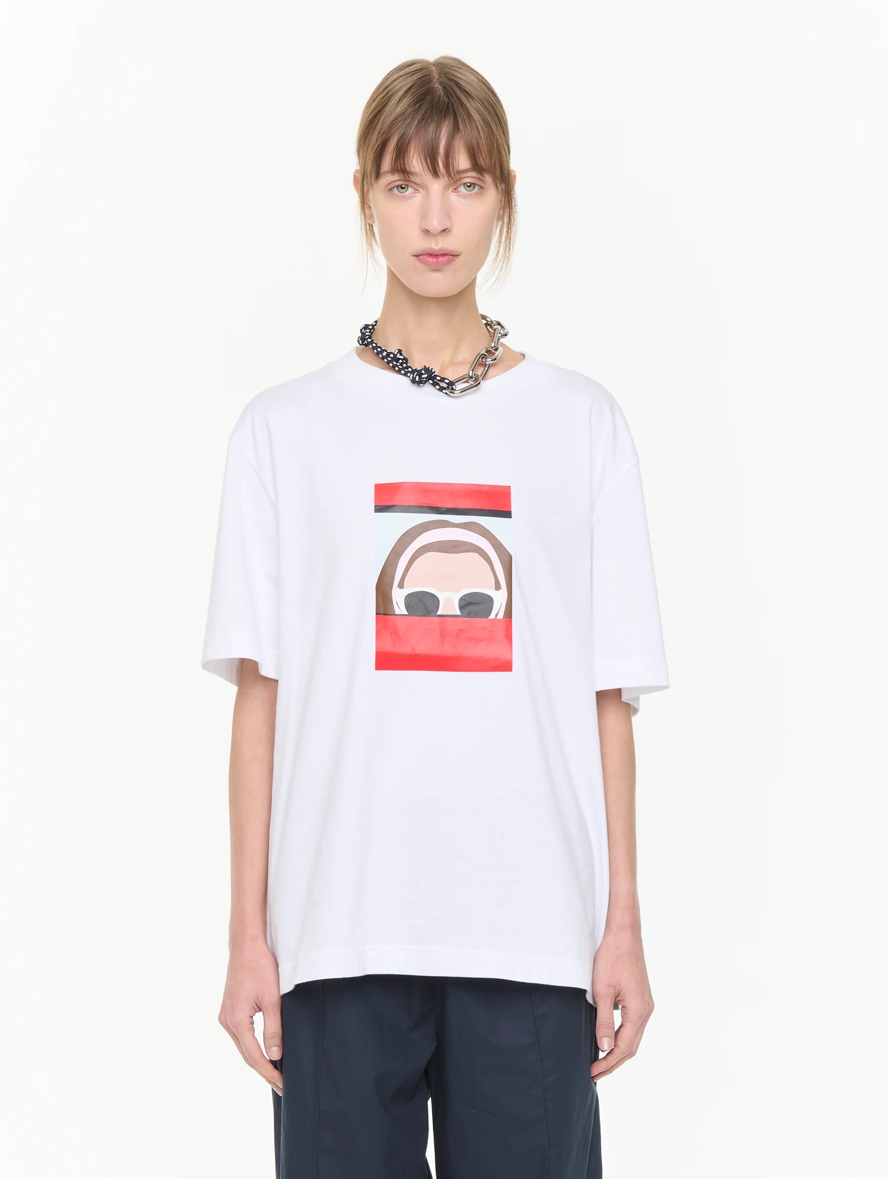 The Knotted Cord and Chain Necklace in Blue & White from Plan C fuses contemporary edge with understated elegance. Featuring sculptural metal links intertwined with knotted cord detailing, its graphic silhouette brings a subtle yet striking contrast to any look. Whether layered with delicate chains or worn alone, this necklace elevates both minimalist tailoring and elevated casuals with a thoughtful, artful touch.