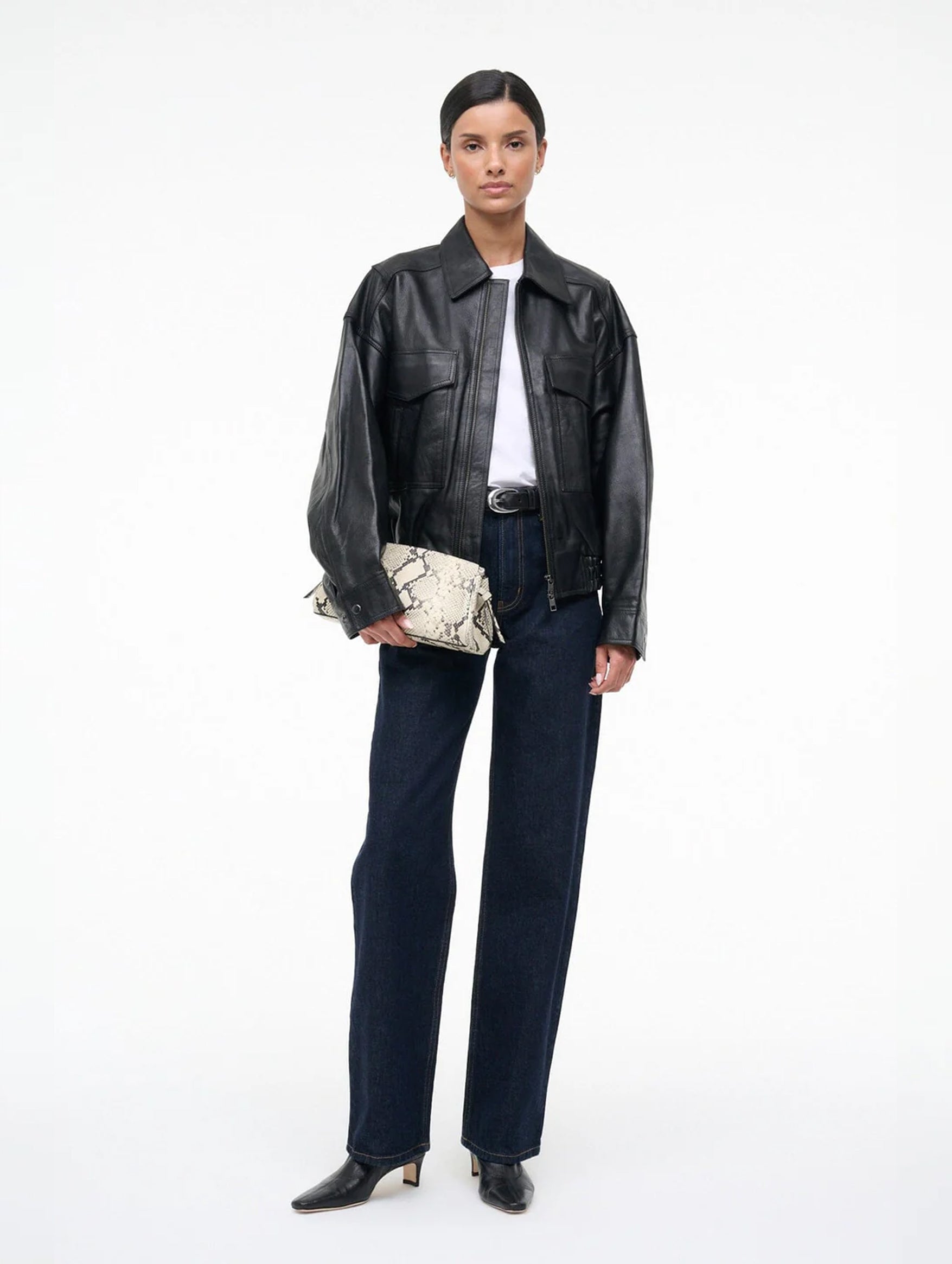 Sculptural and striking, the Maude Convertible Clutch in White Snake merges minimalist design with bold texture. Its clean, structured silhouette and luxe snakeskin finish make it an elegant statement accessory, equally at home gracing a black‑tie evening or elevating a minimalist daytime outfit. Compact yet commanding, it’s the kind of clutch that transforms any look with effortless sophistication.