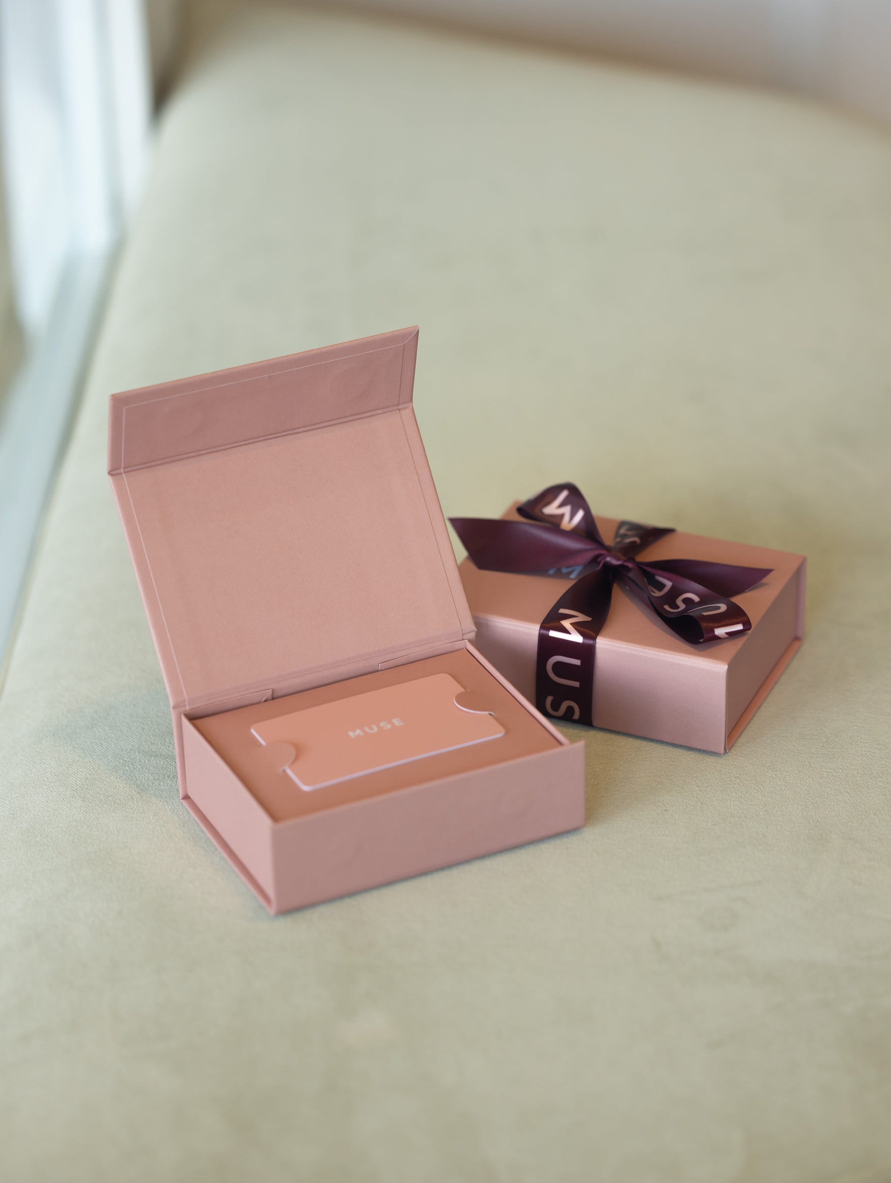 Each gift card is presented in our signature, beautifully packaged Muse gift card box, adding a luxurious touch to your gifting.