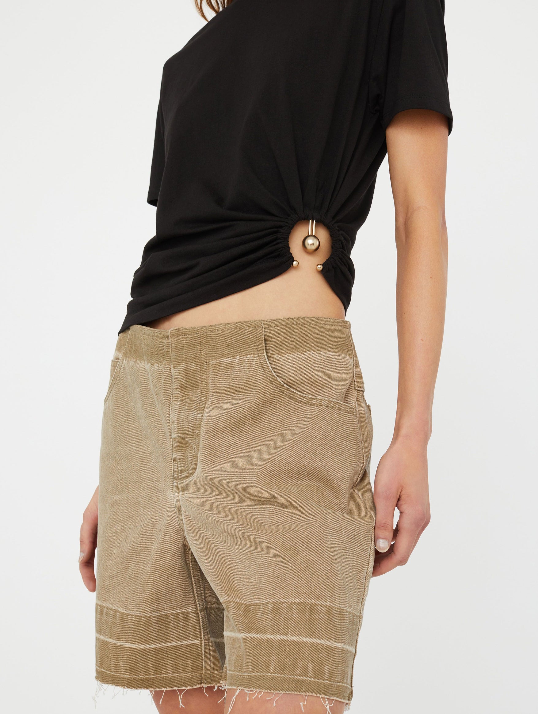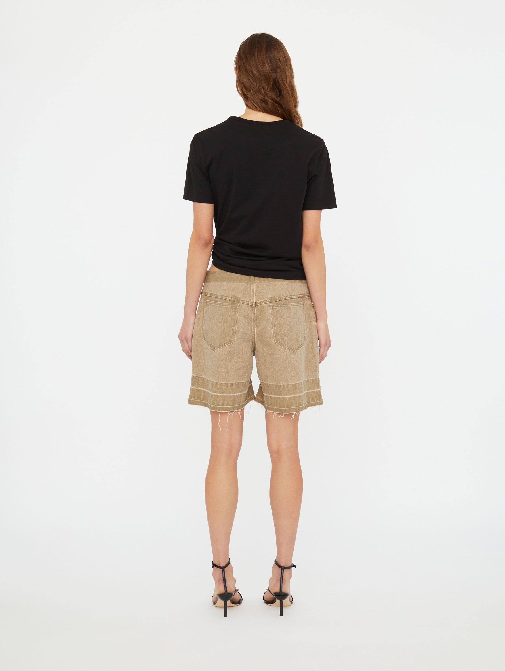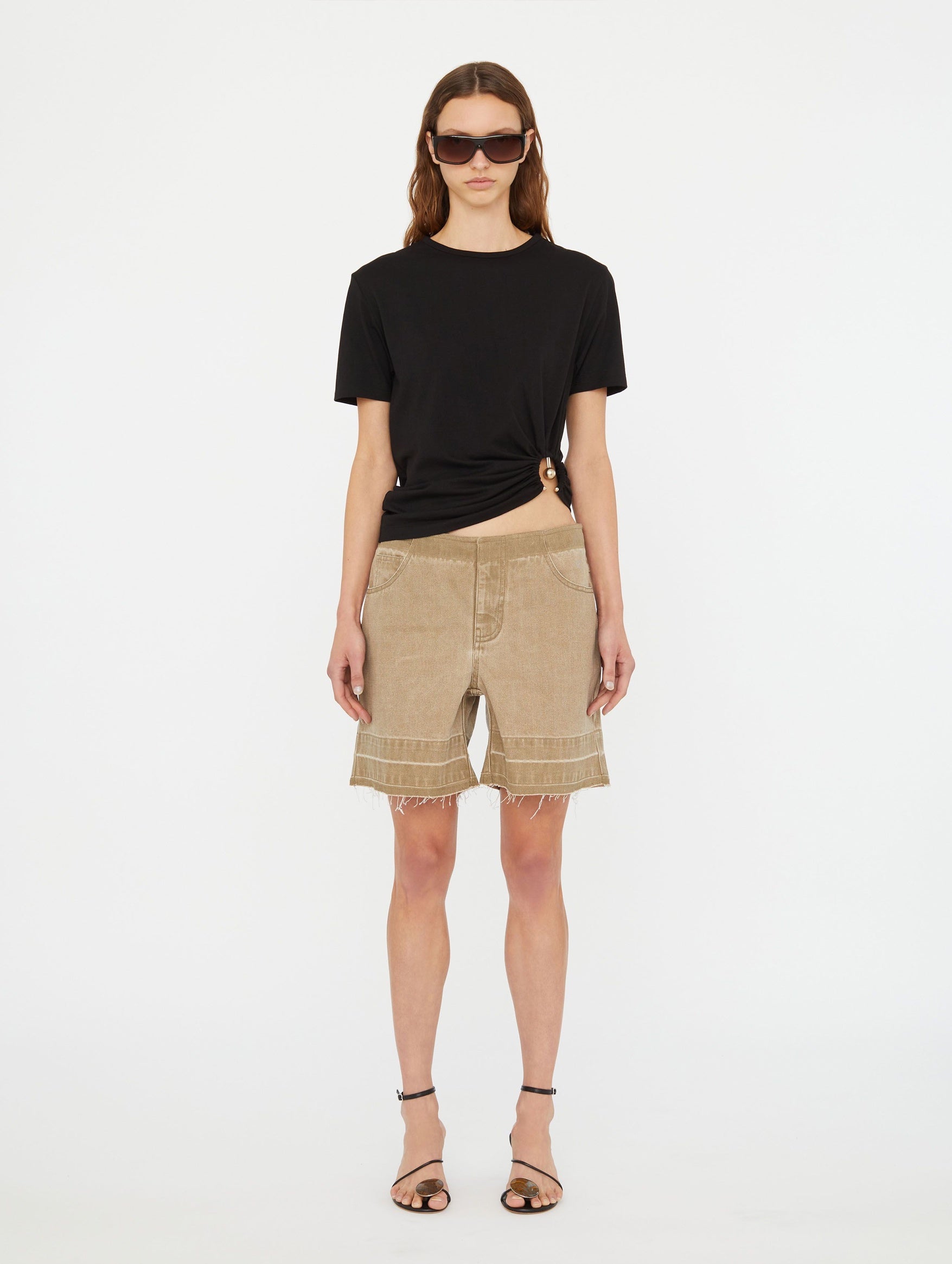 An interplay between soft and sculptural, the Orbit Tee from Christopher Esber is an elevated rendition of an everyday style. This classic silhouette reveals contorted detailing with its metal hardware at the hip, ruching the fabric for a truely unique silhouette. The perfect elevation for your everyday closet.