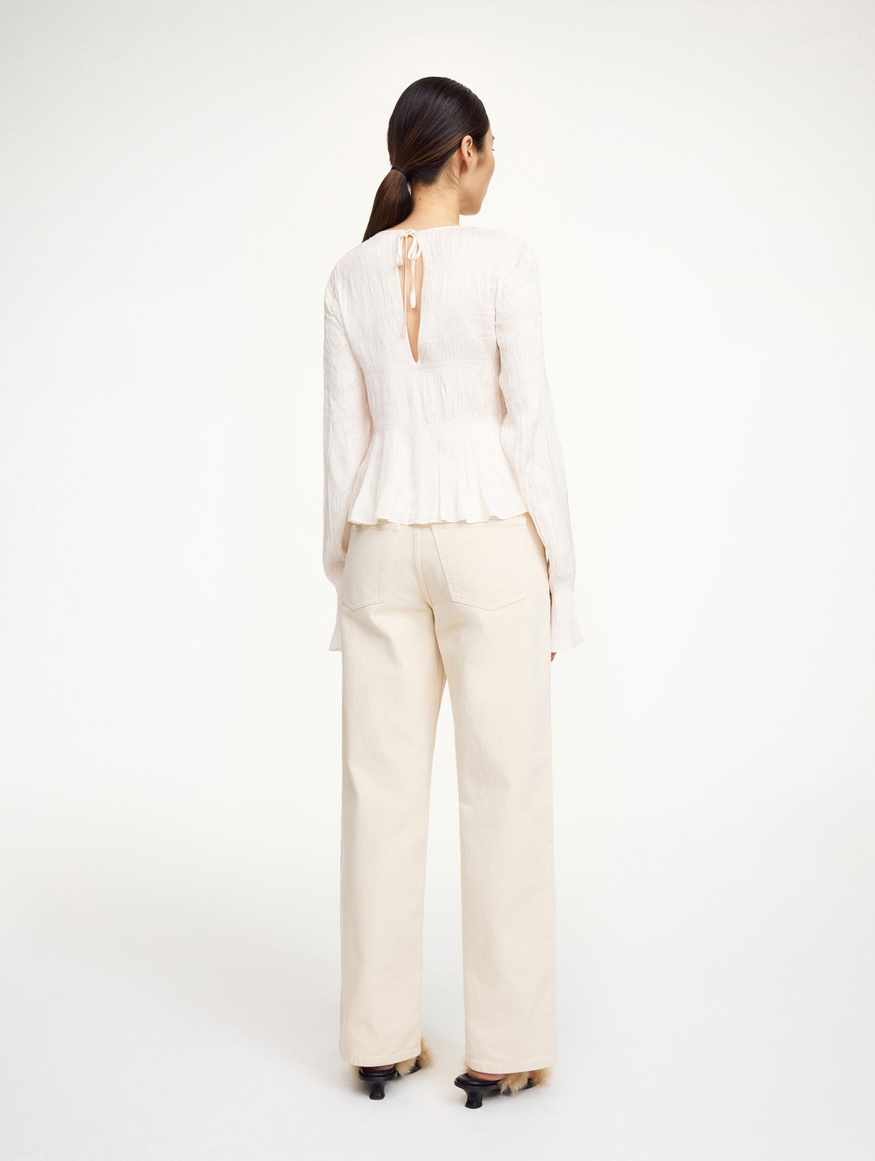 The Ovas Blouse by By Malene Birger brings an artful twist to a wardrobe essential. With subtle volume at the sleeves and a refined, curved hemline, its silhouette feels both contemporary and elegantly easy. The crisp fabric and thoughtful cut make it a standout on its own or layered under tailoring, perfect for adding sculptural sophistication to daytime dressing or understated polish to evening looks.