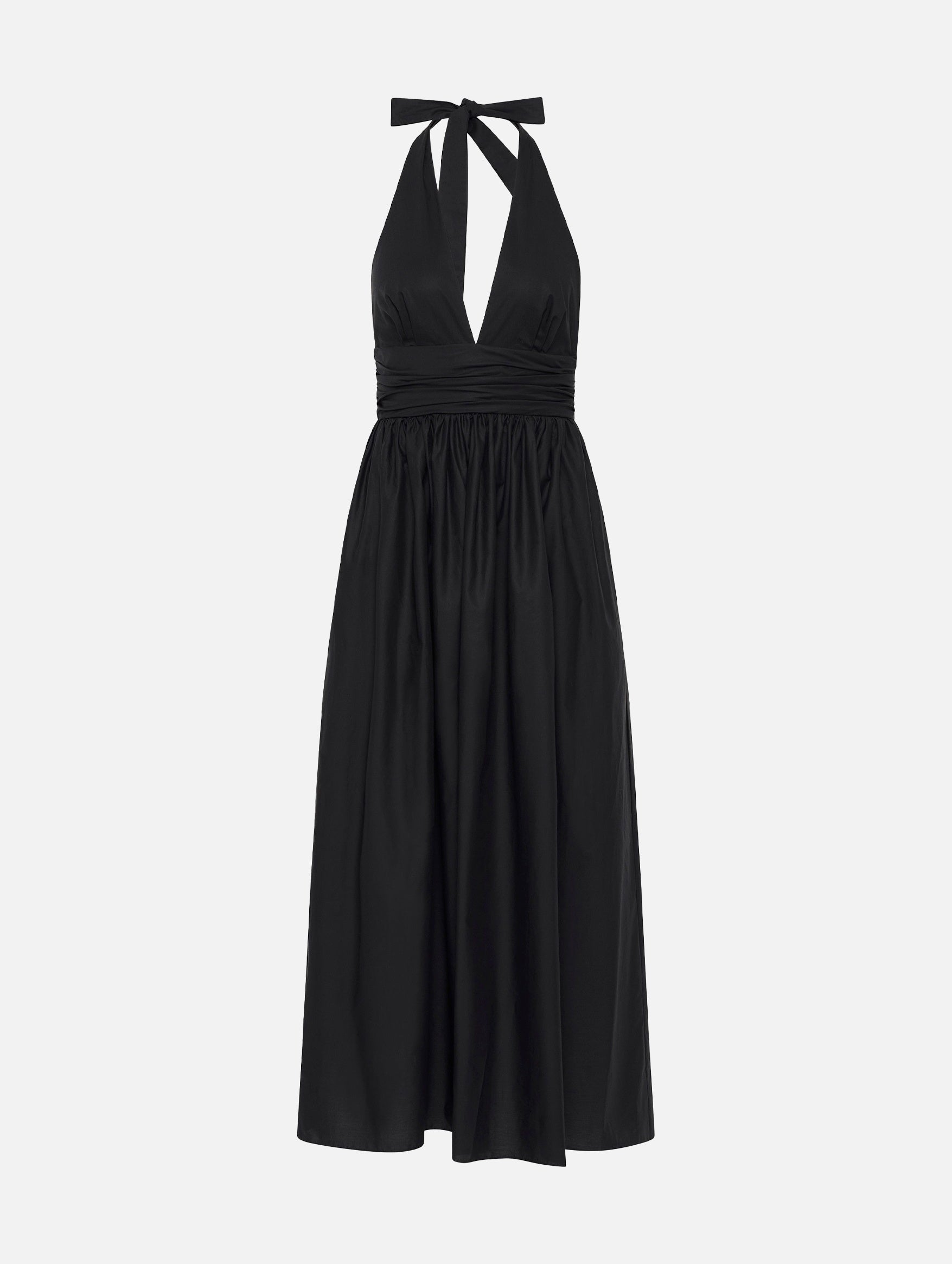 Introducing the Plunge Halter Dress from Matteau, an easy choice for easy yet elevated looks this season. Made from their renowned Organic Cotton, this silhouette features a fitted bodice, elongated neck tie and a low back for a hint of allure. Wear with strappy sandals for a refined, polished look.