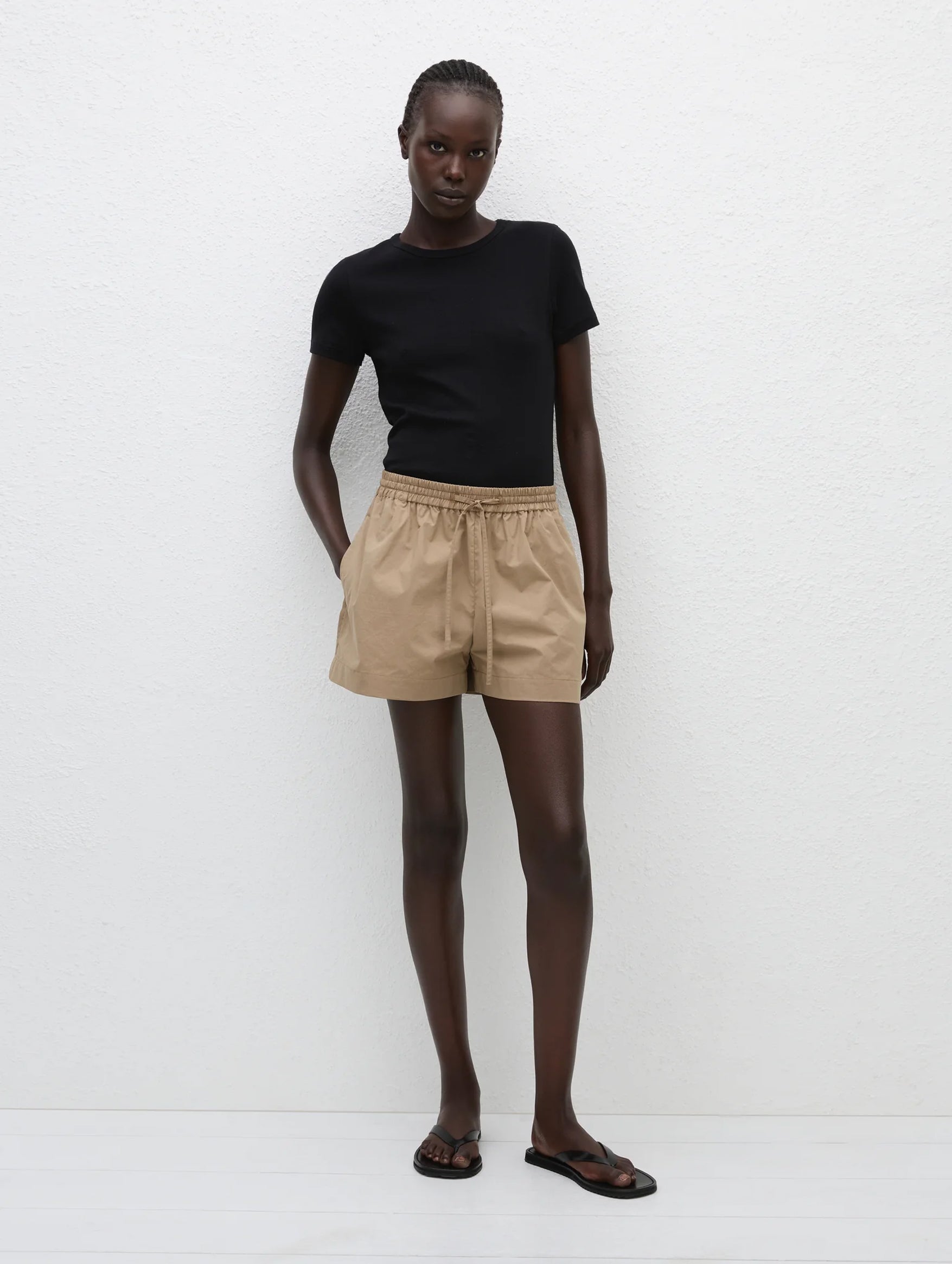 Designed with summer days in mind, the Relaxed Cotton Short in Stone from Matteau is made from our organic cotton poplin with a washer finish. These easy pull-on shorts feature an elasticated waistband, inseam pockets, back pocket detailing and an angled flattering hem. Wear these shorts casually over your swimwear or paired with the matching Relaxed Shirt.