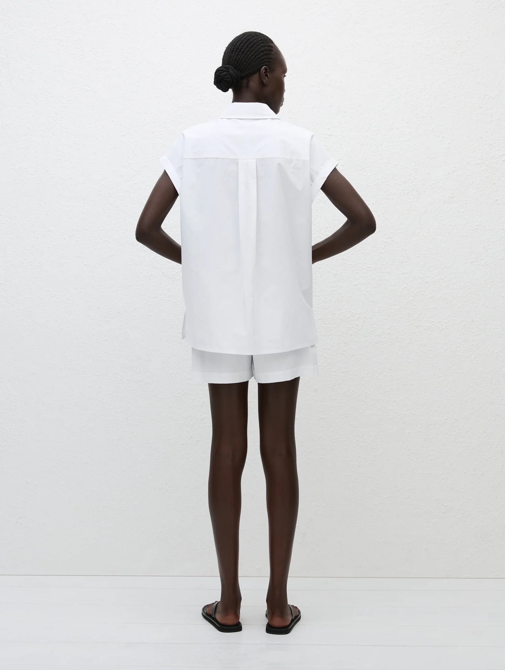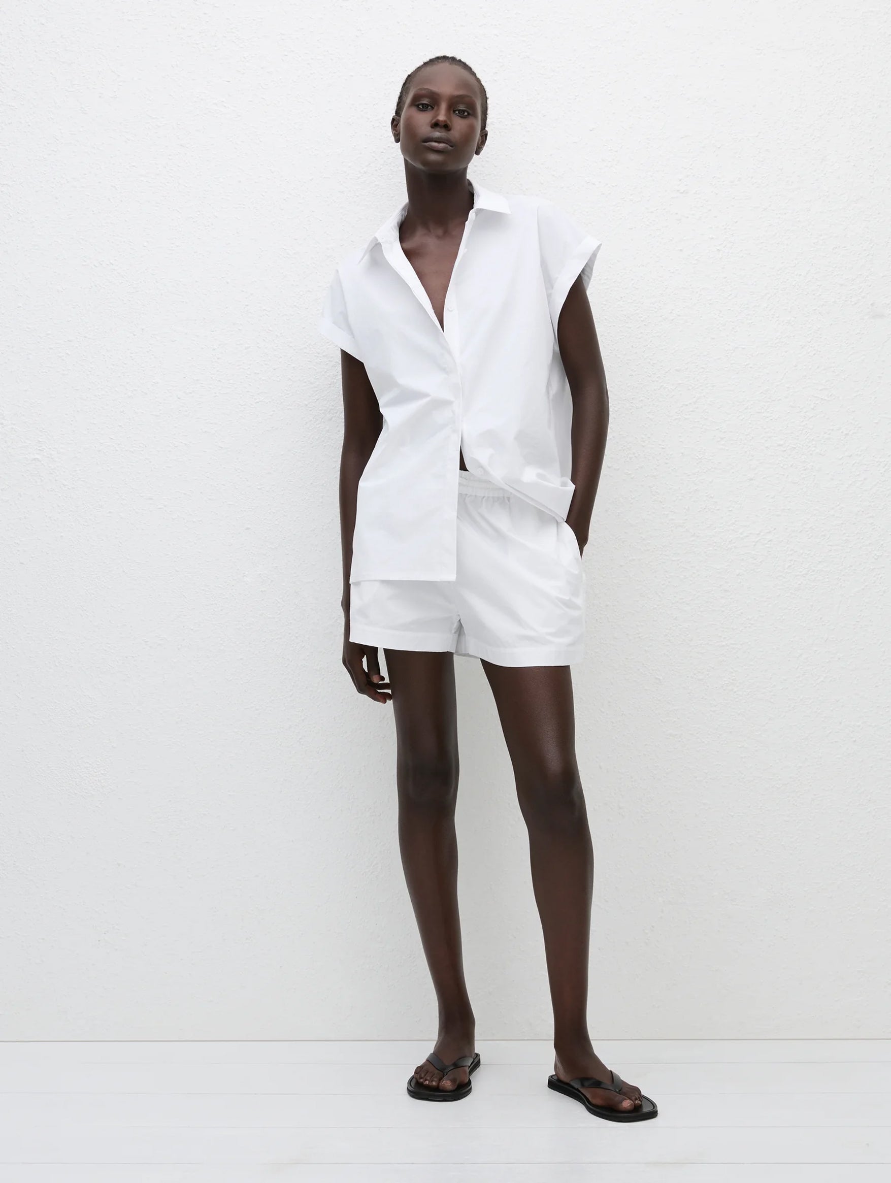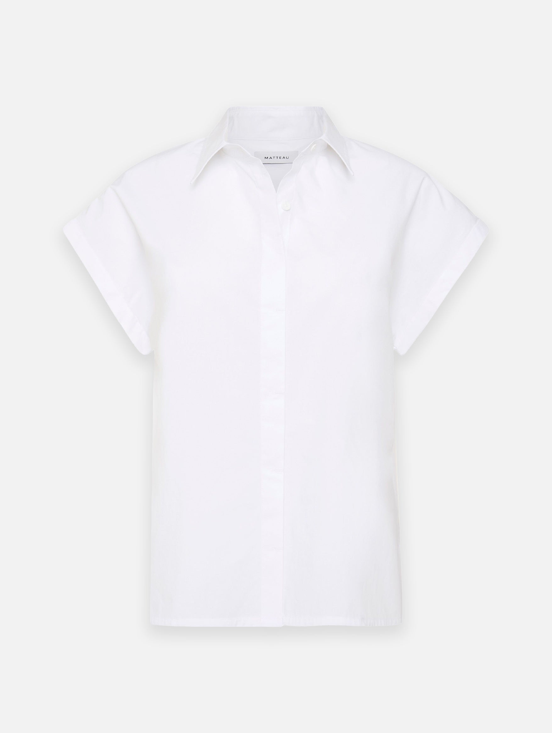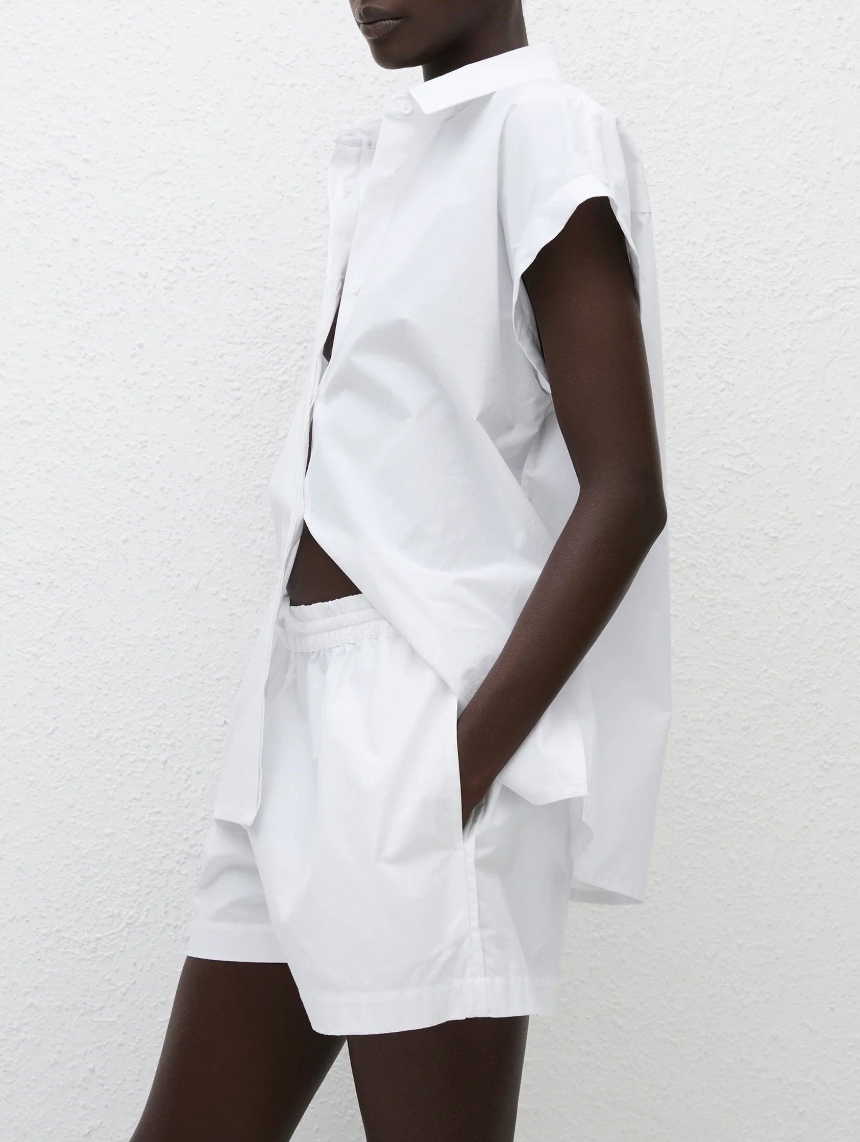 An elevated yet classic silhouette, the Relaxed Sleeveless Shirt in White is ideal for warm summer days. Made from Matteau's organic cotton poplin with a washer finish, the shirt features a concealed button placket with bartack detailing. Wear tucked into denim and pulled together with a belt.