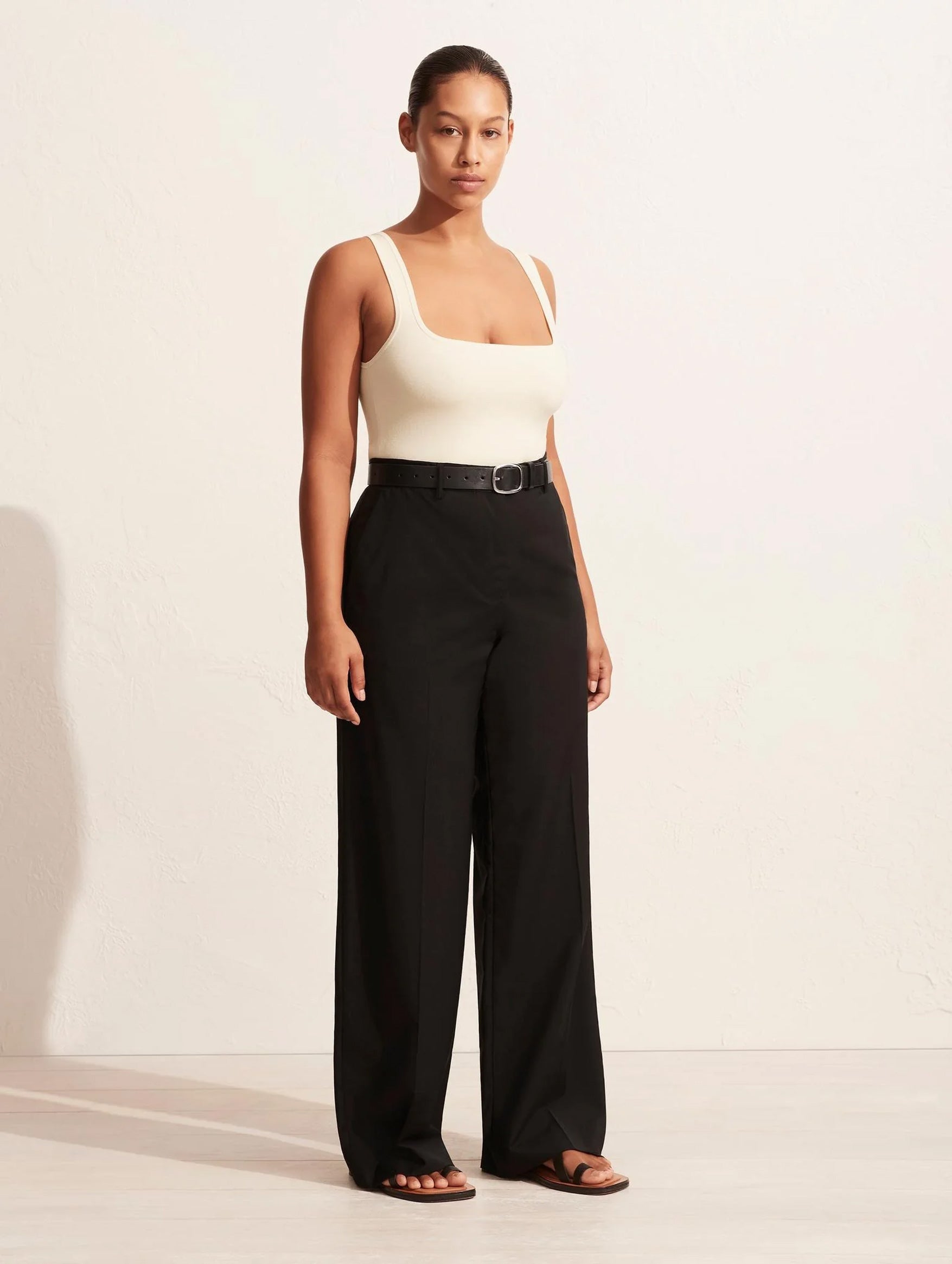 A relaxed tailored trouser in a lightweight wool blend suiting, including biodegradable nylon for crease-resistance and durability. Side pockets with fly front and internal 'man style' waist banding. Pair with the Relaxed Tailored Blazer for a coordinated look.