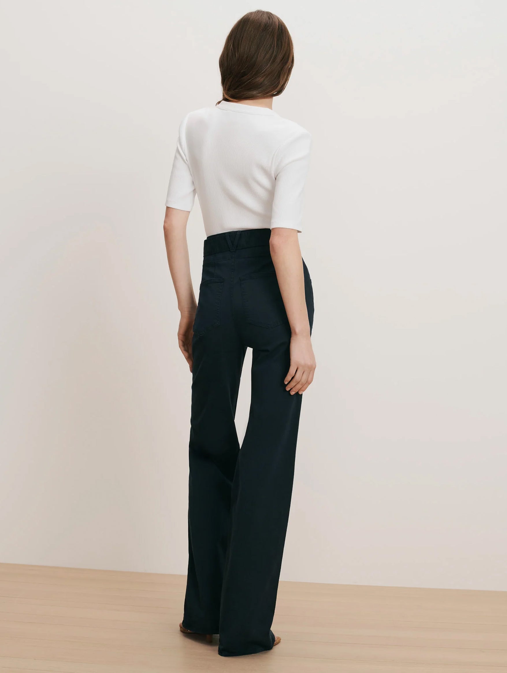 Refined and elongating, the Veronica Beard Rosanna Wide-Leg Pant is crafted from premium Japanese cotton twill with a hint of stretch. Designed with a high-rise corset waistband, tie belt, and signature V-shaped belt loop, it creates a flattering, structured silhouette. Pair with a simple tee or tailored jacket for elevated everyday styling.