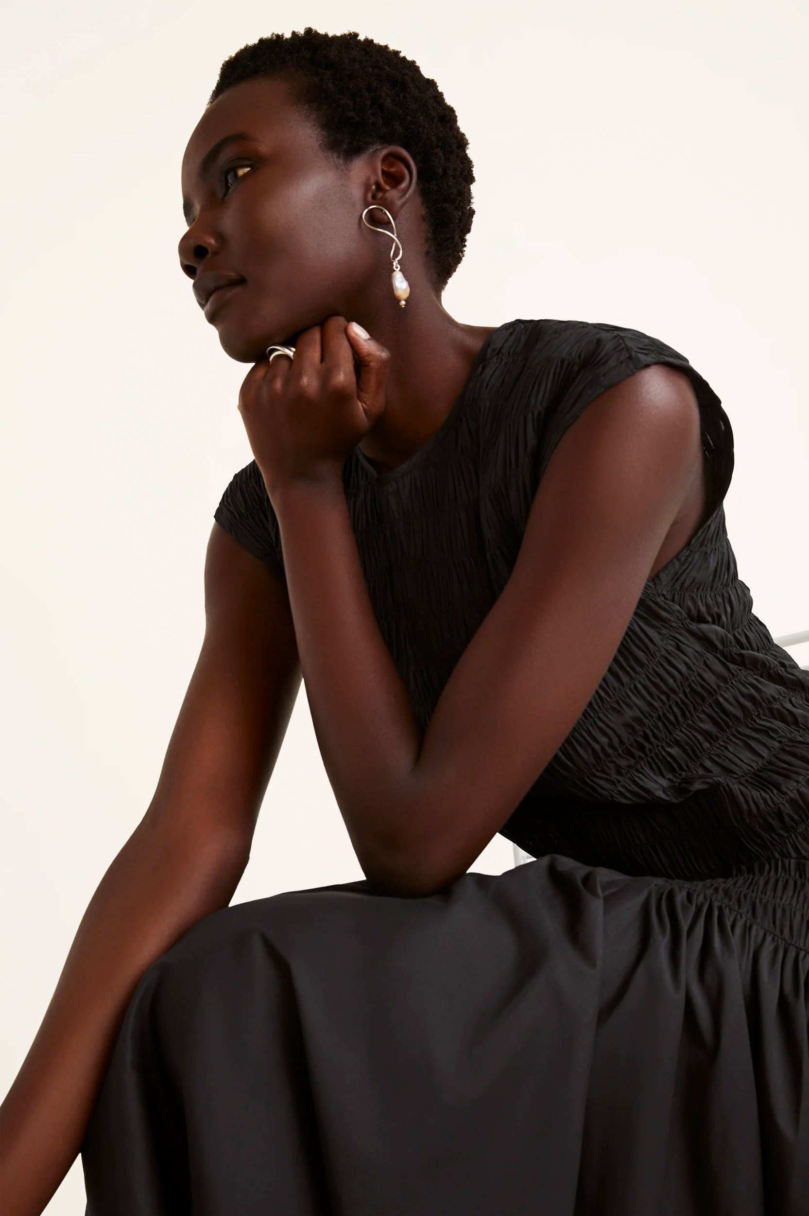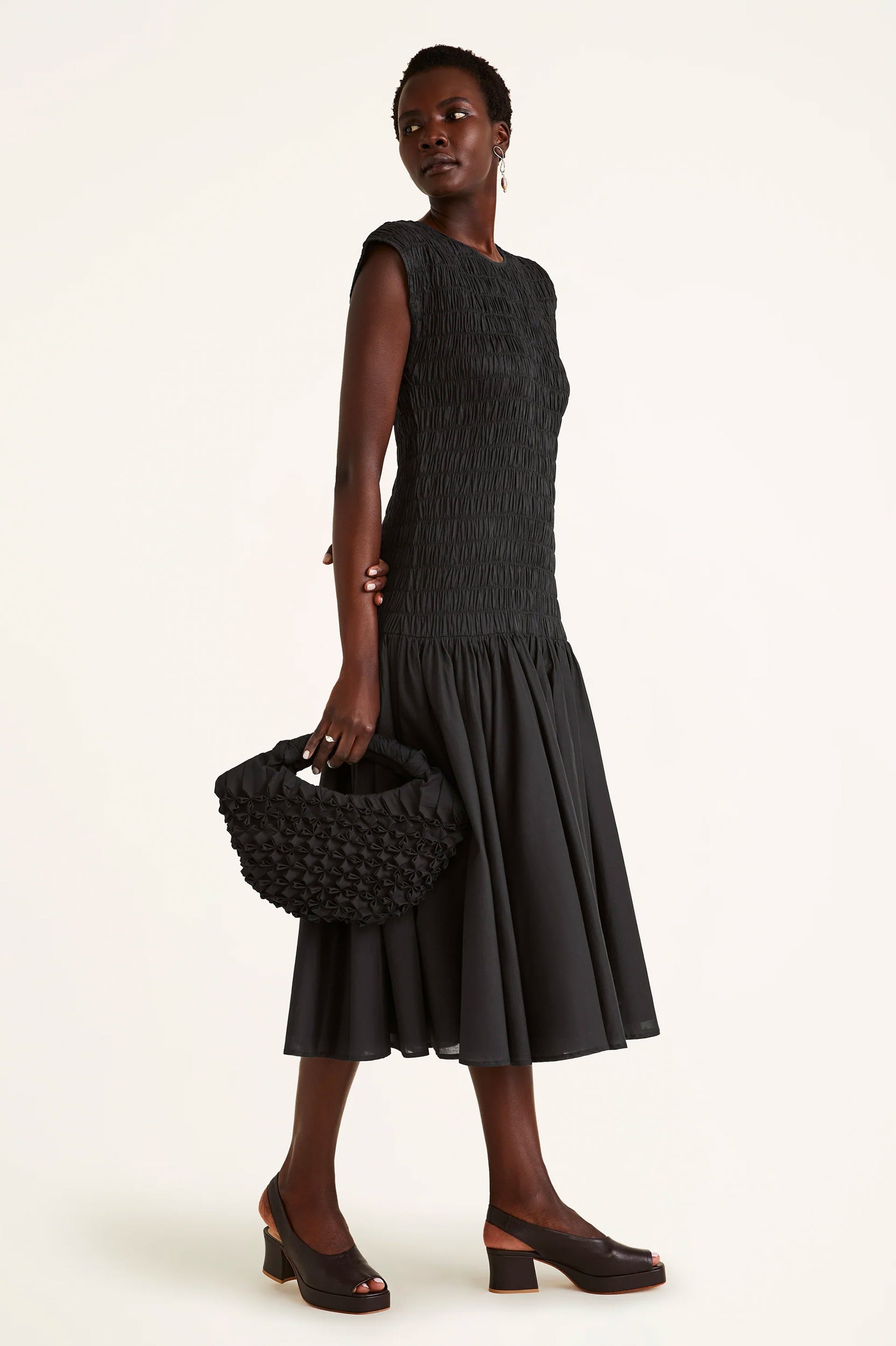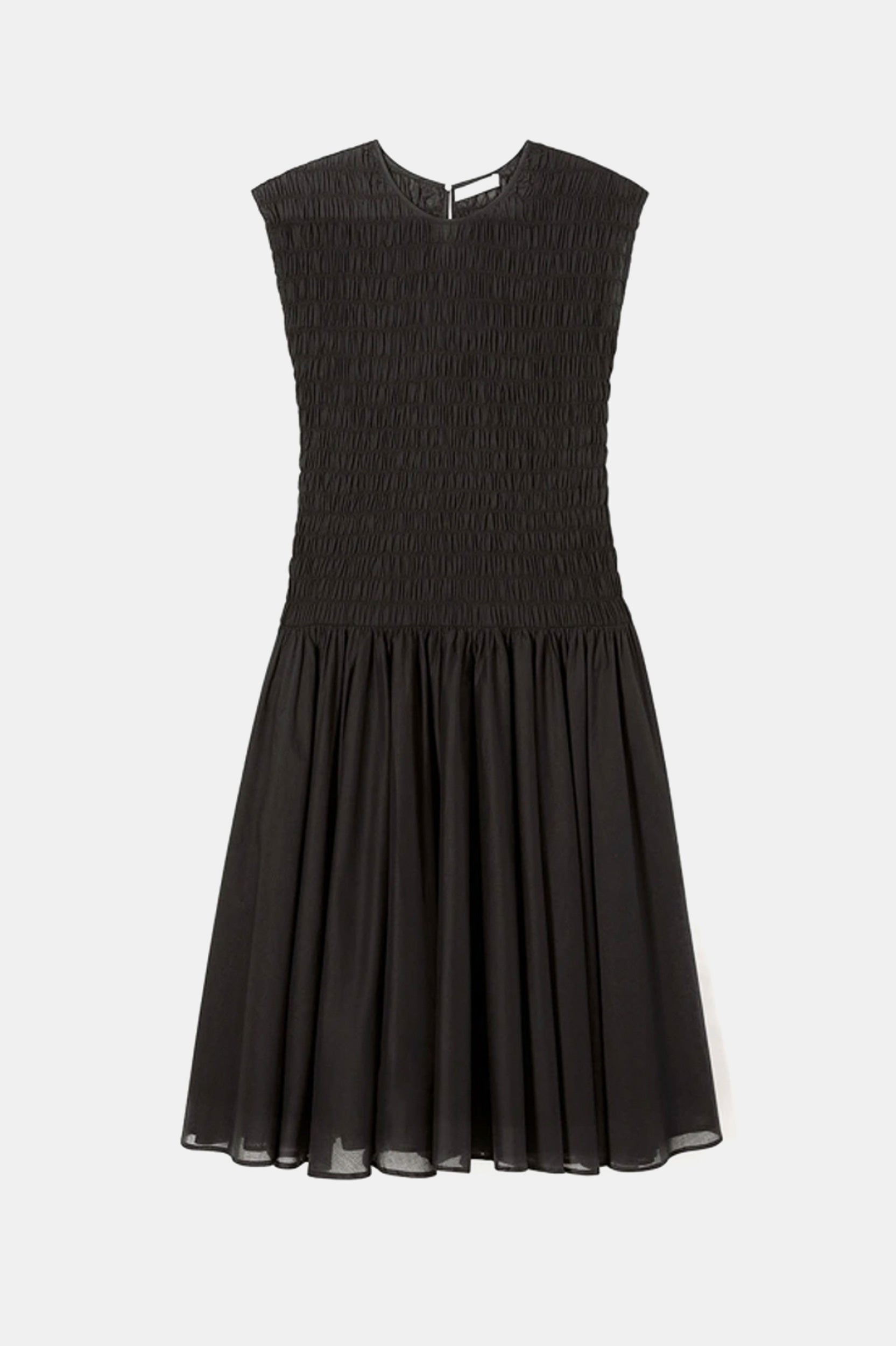 All-over smocking creates a silhouette that skims, but doesn’t hug, the body to the hips. The drop waist flares into a fluttering skirt that hits at mid-calf for a flattering midi length. The smocking uses a soft elastic thread that ensures a comfortable wear and a versatile fit. The cap sleeve gives a touch of extra coverage and elegance, making this one of our favorite dresses for weddings and other events.