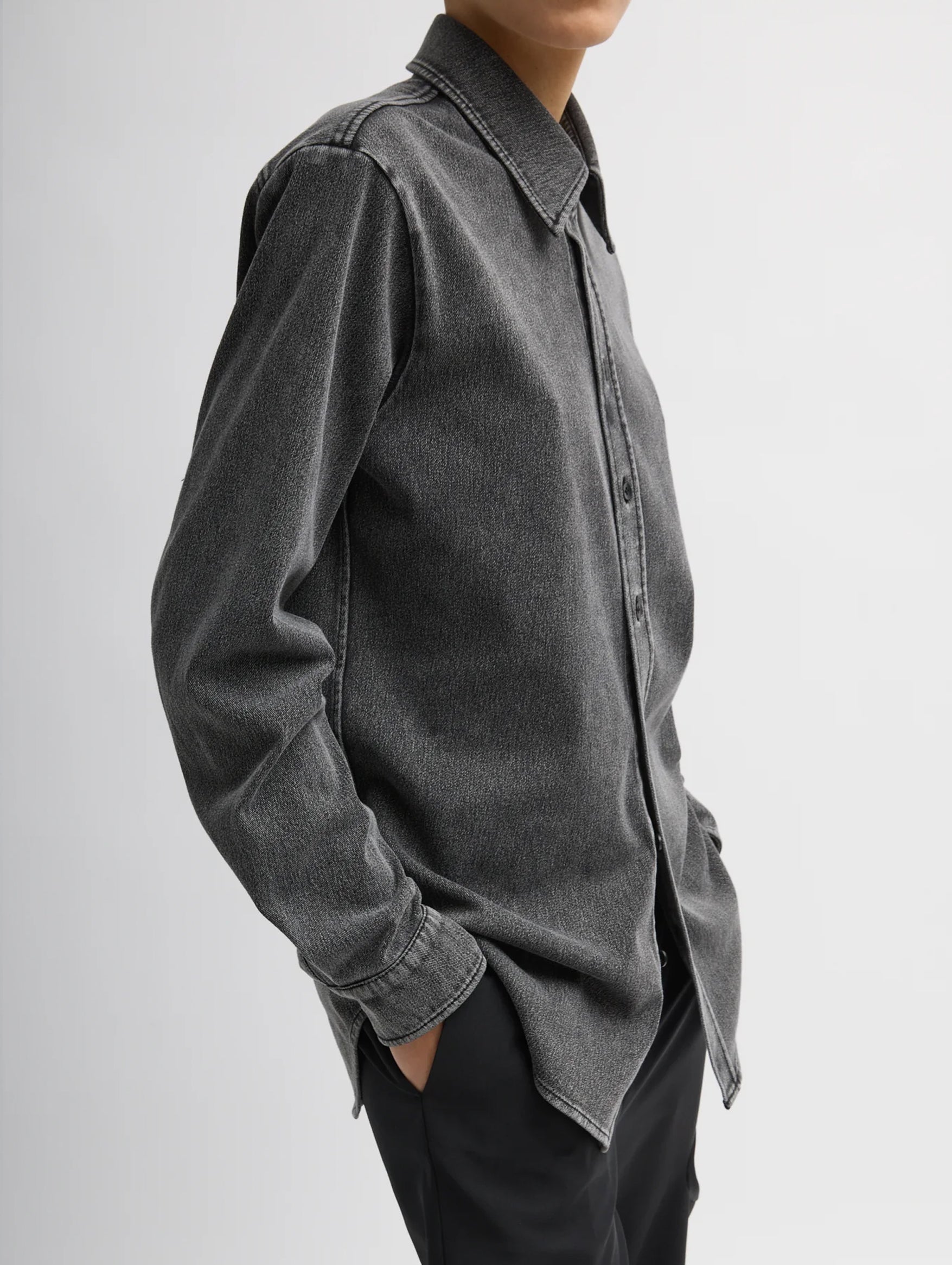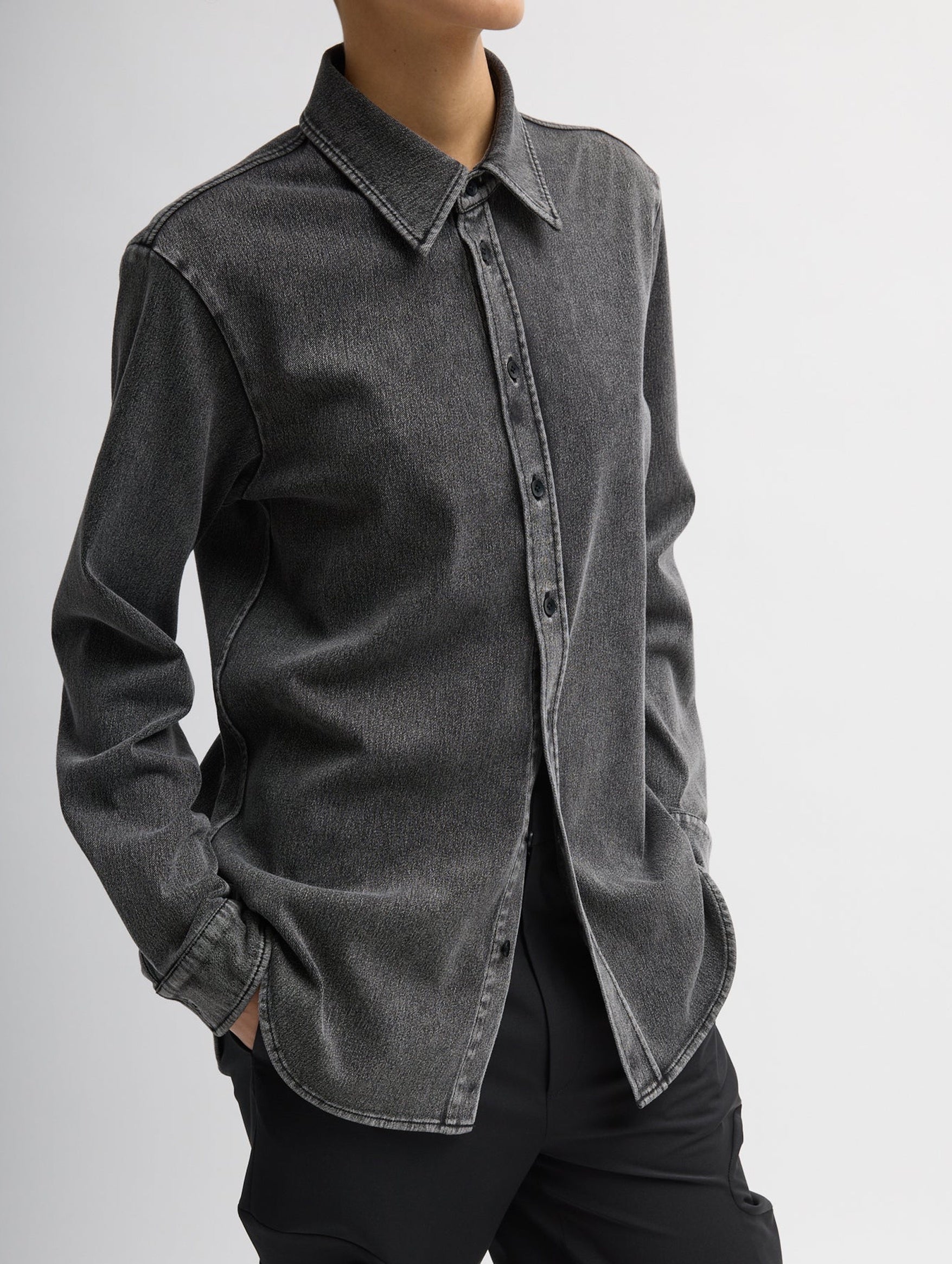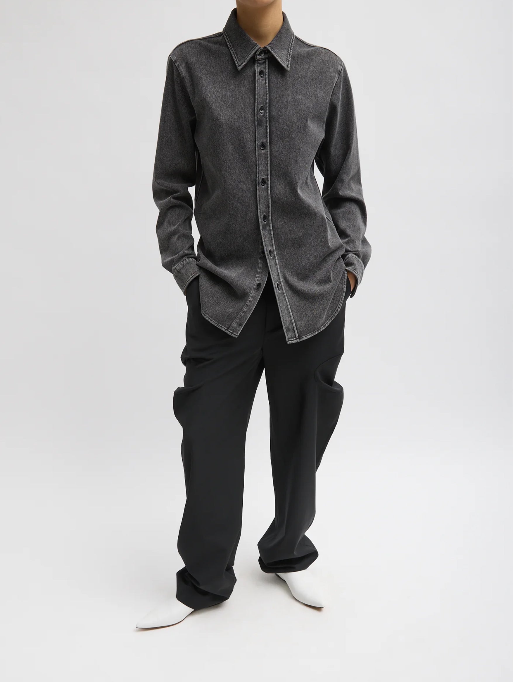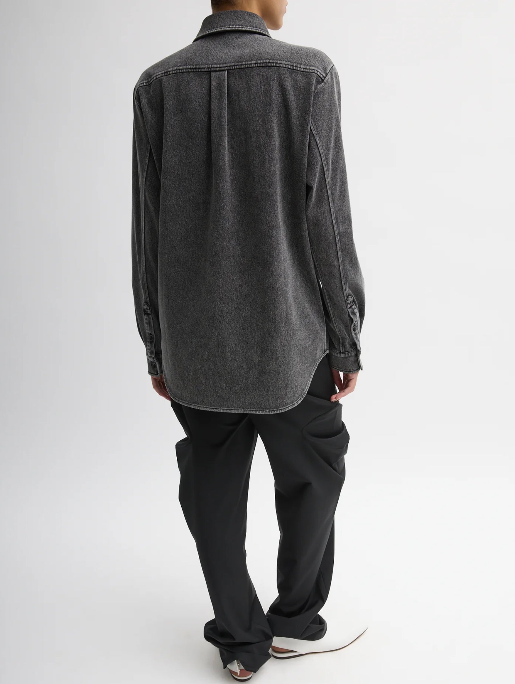 Tibi's Stretch Denim Easy Shirt delivers the look of a classic denim button-down with the ease and comfort of lightweight jersey. Cut in a relaxed silhouette, this piece blends structure and fluidity, offering an effortless sensibility that still feels polished. Pair it back to the coordinating Winslow Pant or Baby T for an iconic full-set look.