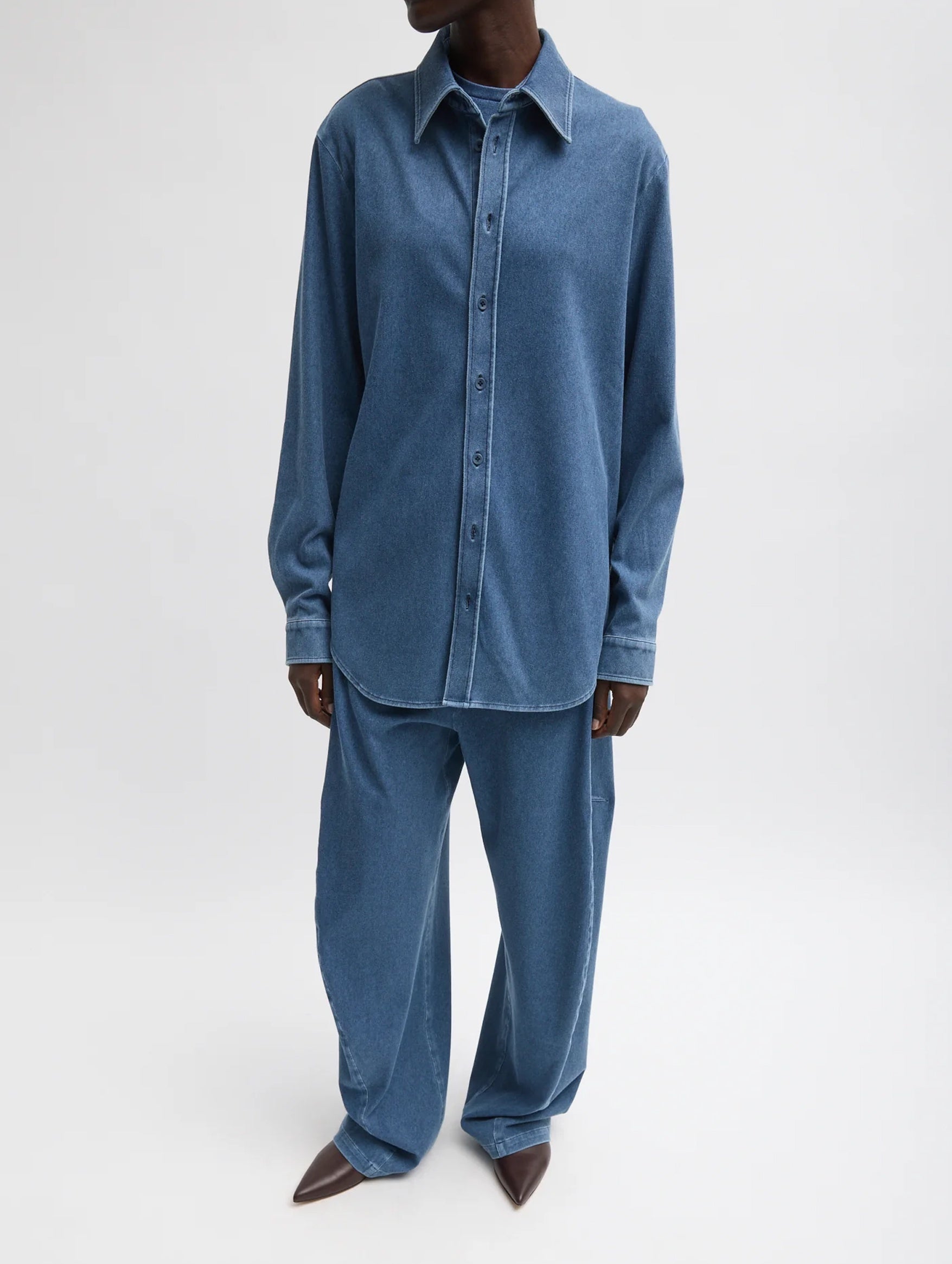 Tibi's Stretch Denim Easy Shirt in Classic Wash delivers the look of a classic denim button-down with the ease and comfort of lightweight jersey. Cut in a relaxed silhouette, this piece blends structure and fluidity, offering an effortless sensibility that still feels polished. Pair it back to the coordinating Winslow Pant or Baby T-Shirt for an iconic full-set look.