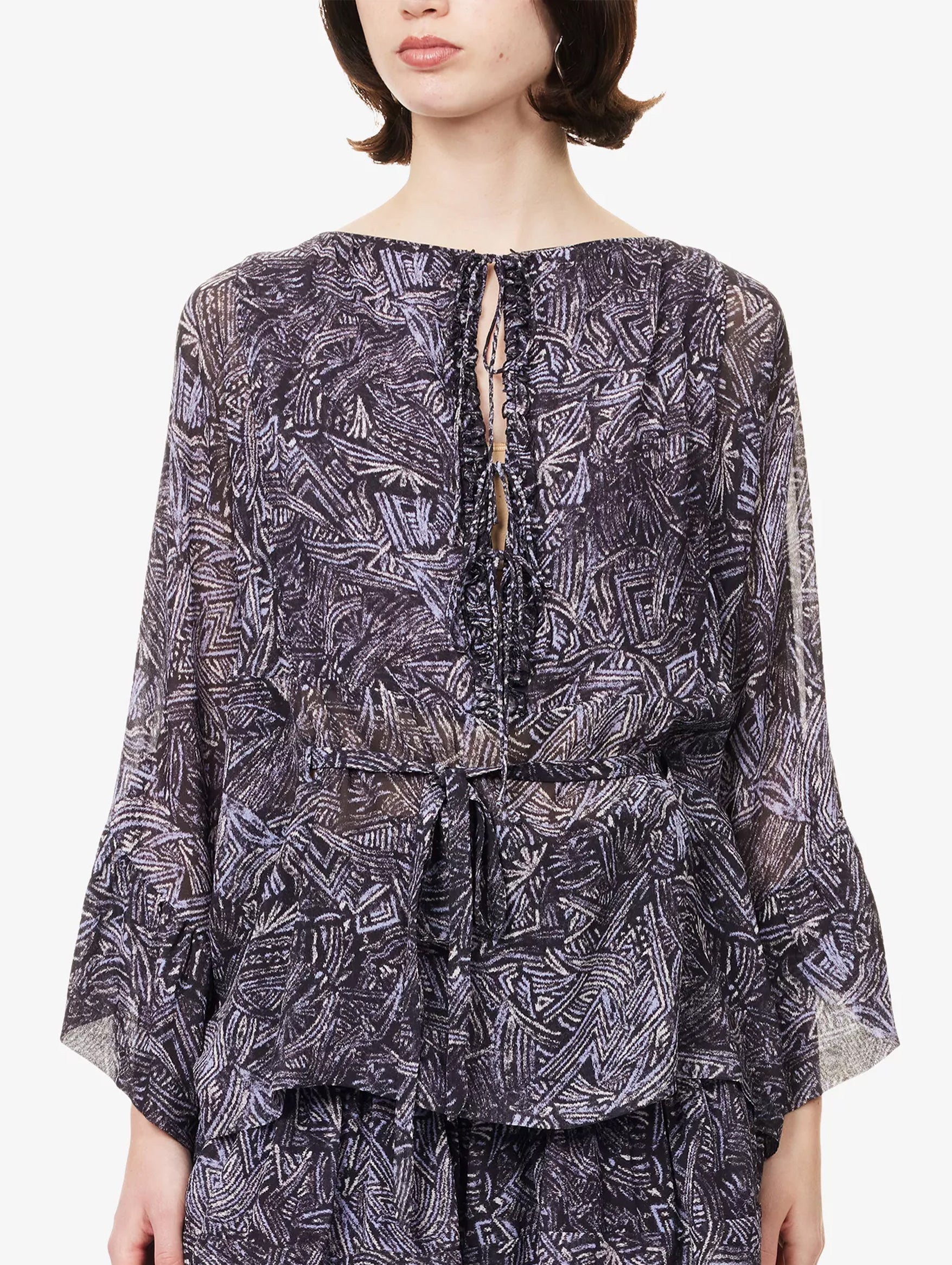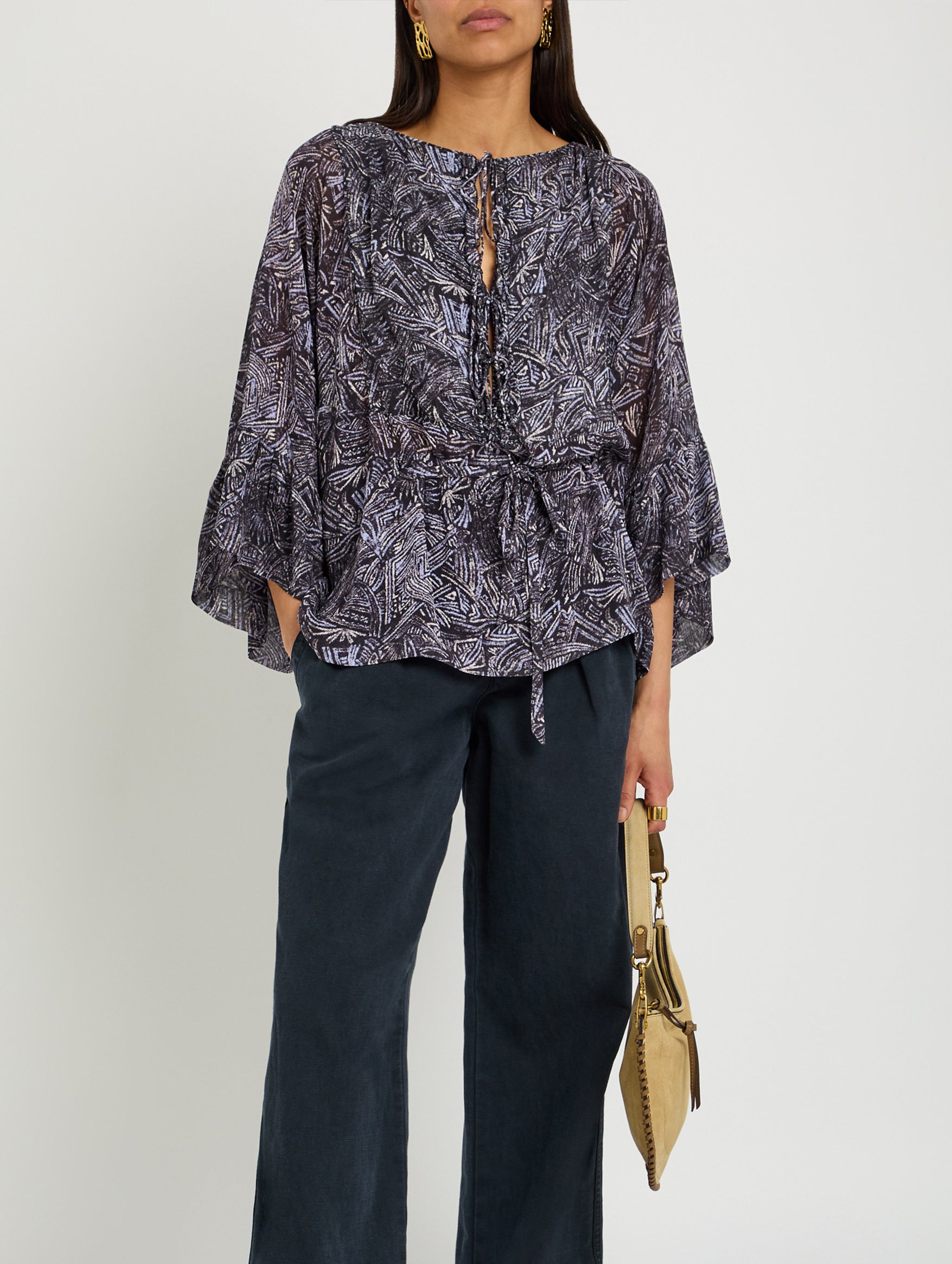 Effortlessly refined with a touch of bohemian allure, the Isabel Marant Tekia Printed Silk Top in Faded Night brings fluid elegance to everyday dressing. Crafted from pure silk, it drapes softly through a relaxed silhouette, while the intricate print adds depth and visual interest. Lightweight and versatile, it pairs seamlessly with denim or tailored separates for an elevated yet easy finish.